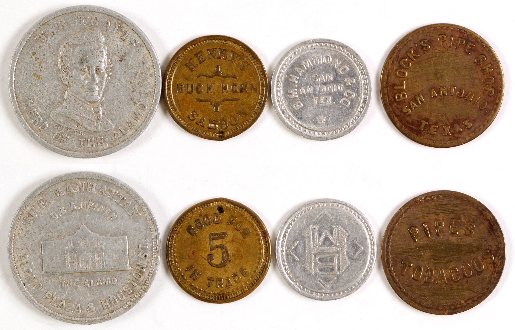 1) The Manhattan, 2) Henry's Buck Horn Saloon, 3) B. M. Hammond & co., 4) Block's Pipe Shop Date: City: San Antonio State: Texas HWAC# 75443