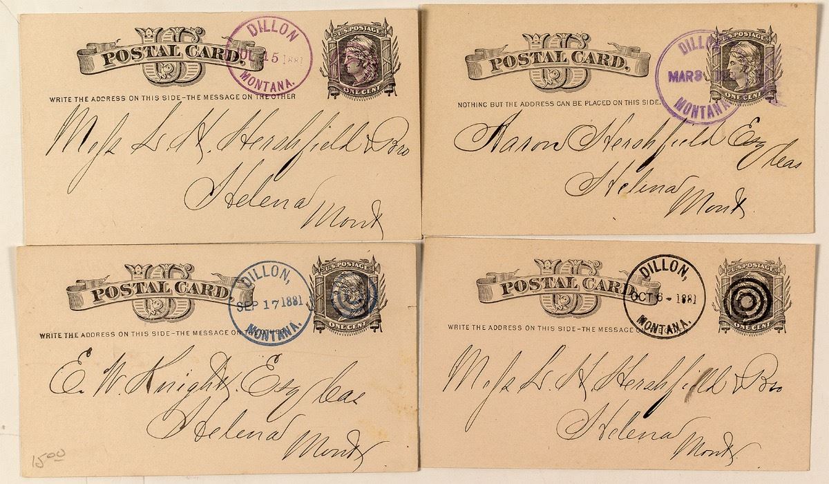 Great collection with four different colored cancels!!! City: Dillon State: Montana Date: 1881-83 ID: 37047