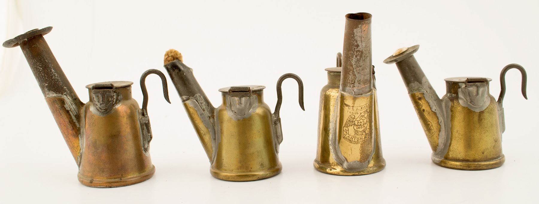 Four brass lamps. All have the brass ID tag on the spout. This ID tag is the classic eagle over a banner ribbon with Anton's name. Nice group, please inspect. State: City: HWAC#: 49020 Date: