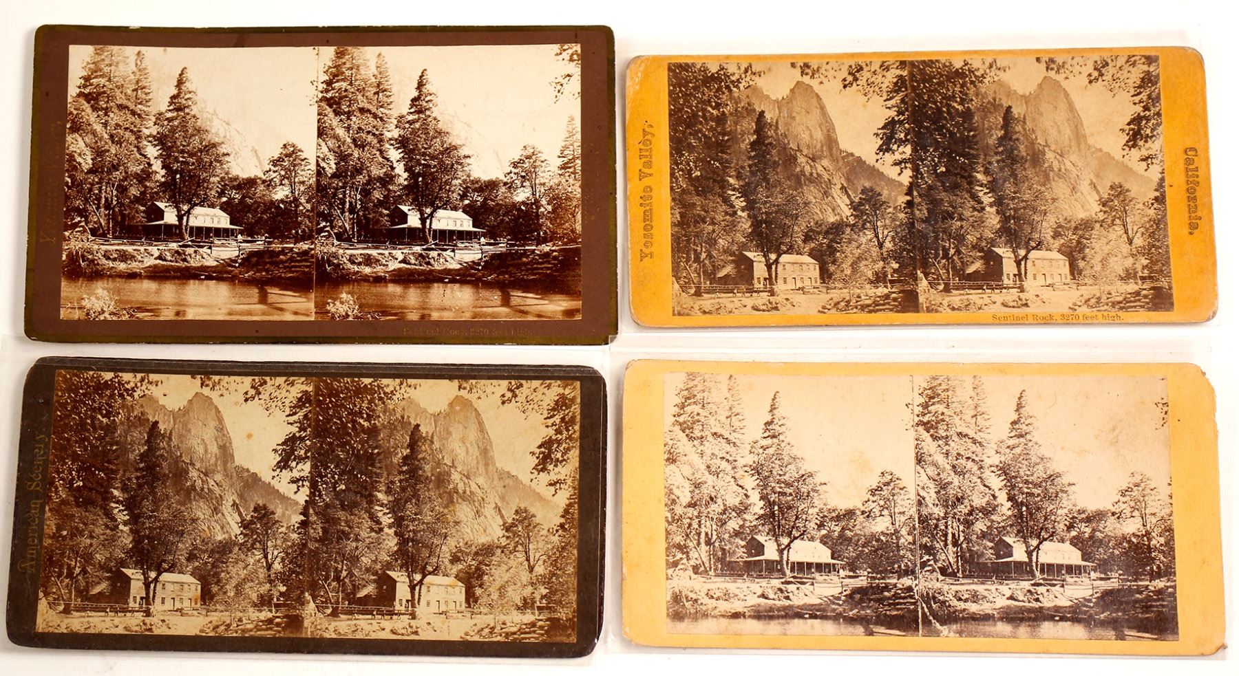 Lot of 4 different. None have the publisher identified. Similar views of the hotel with Sentinel Rock in the background. Please inspect. (Prag Collection) Date: Location: Yosemite, California HWAC# 54787