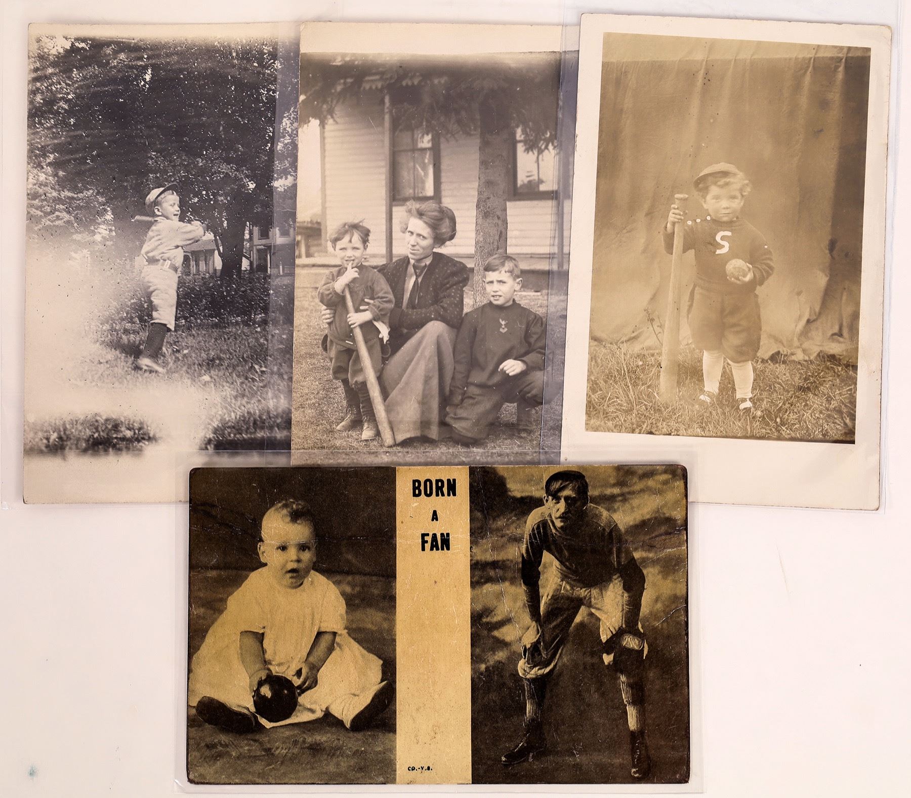 Four very unique RPC's showing images of children in various baseball activities. There are images of little boys holding baseball bats, one with Mom (Or grandma) and a double one featuring a boy as a toddler and a teenager. Please see photos for more detail and condition.