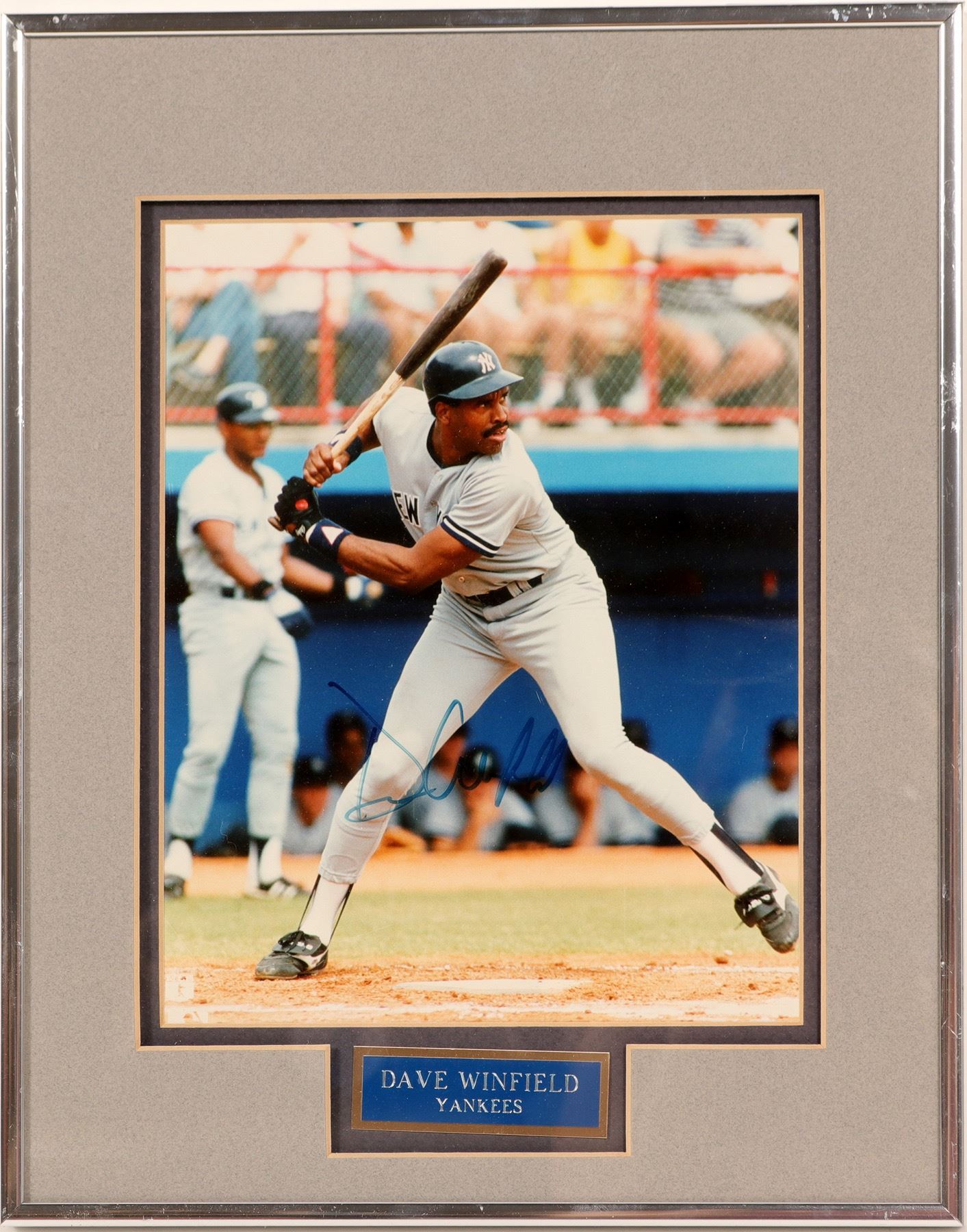 This is a framed 8 x 10 photo and autograph of Dave Windfield. Autograph in blue ink on the center of photo. Comes in beautiful grey case. City: State: Date: