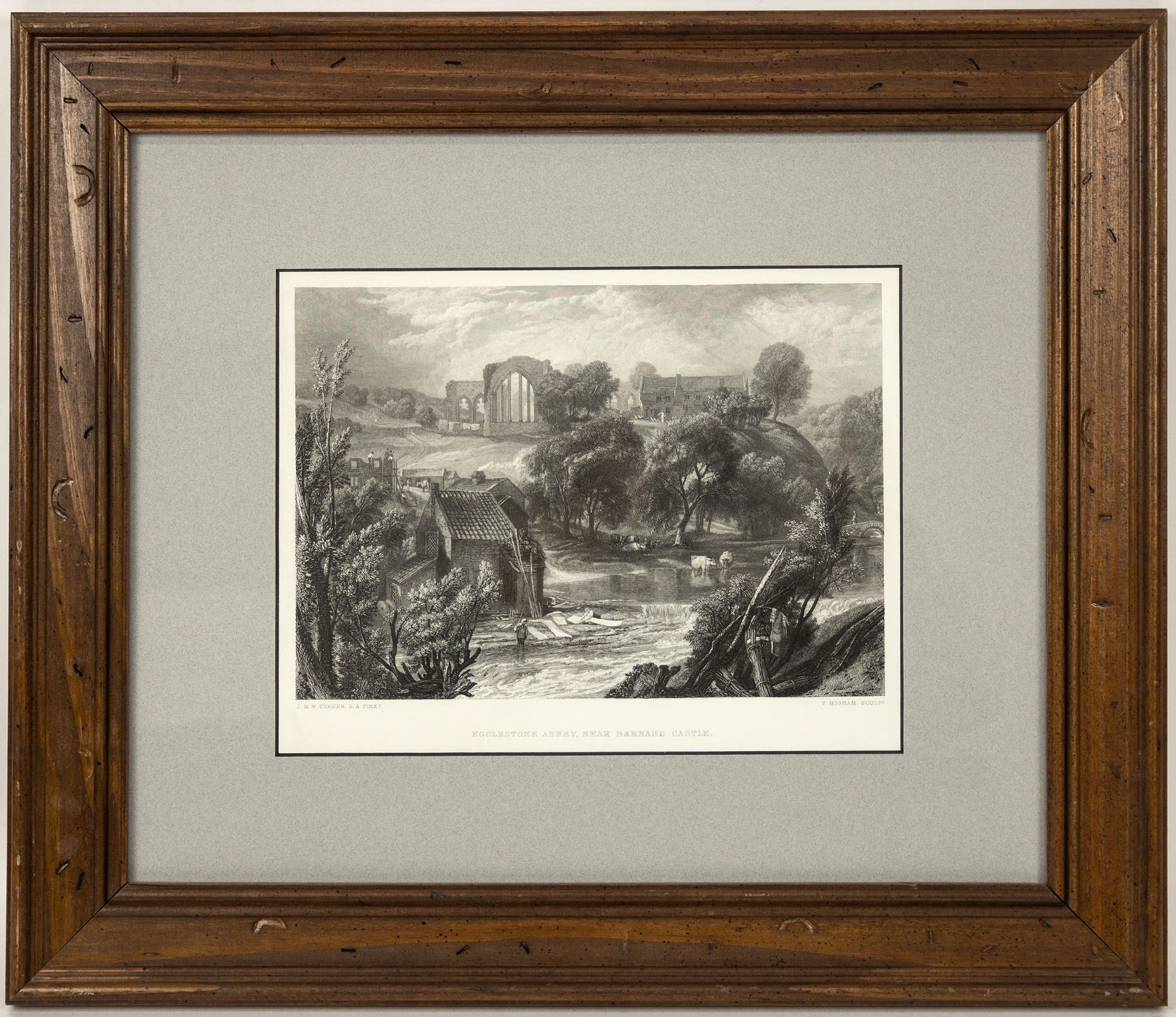 Egglestone Abbey, near Barnard Castle by T. Higham. Frame 17x19". etching 8.5x11".