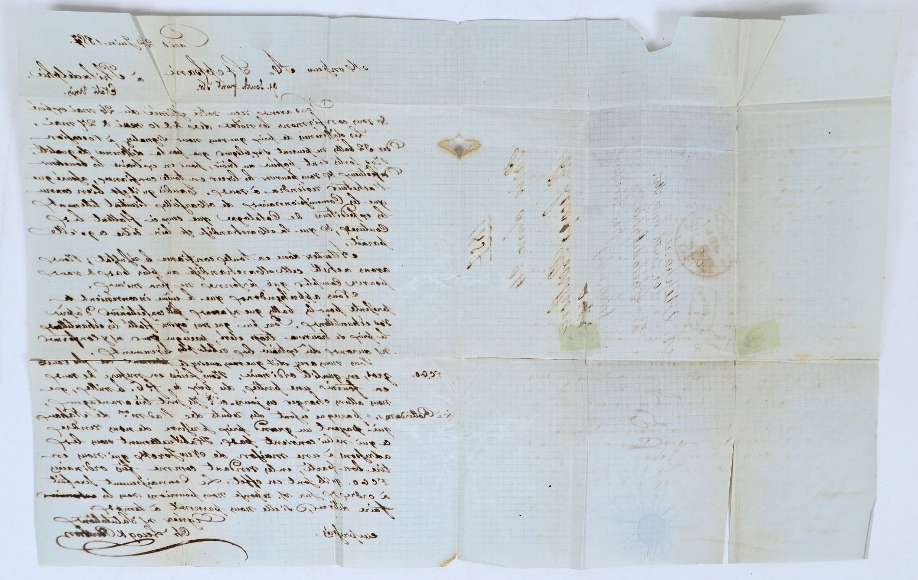 France 1857 lettersheet to Philadelphia (red "PAID 15"arrival) franked with 1853 40c (x3) & 10c tied by killers, alongside Paris datestamp of origin, and red boxed "Br. Service"and "PD,"file fold affects 40c stamps, still an eye-catching exhibit item.