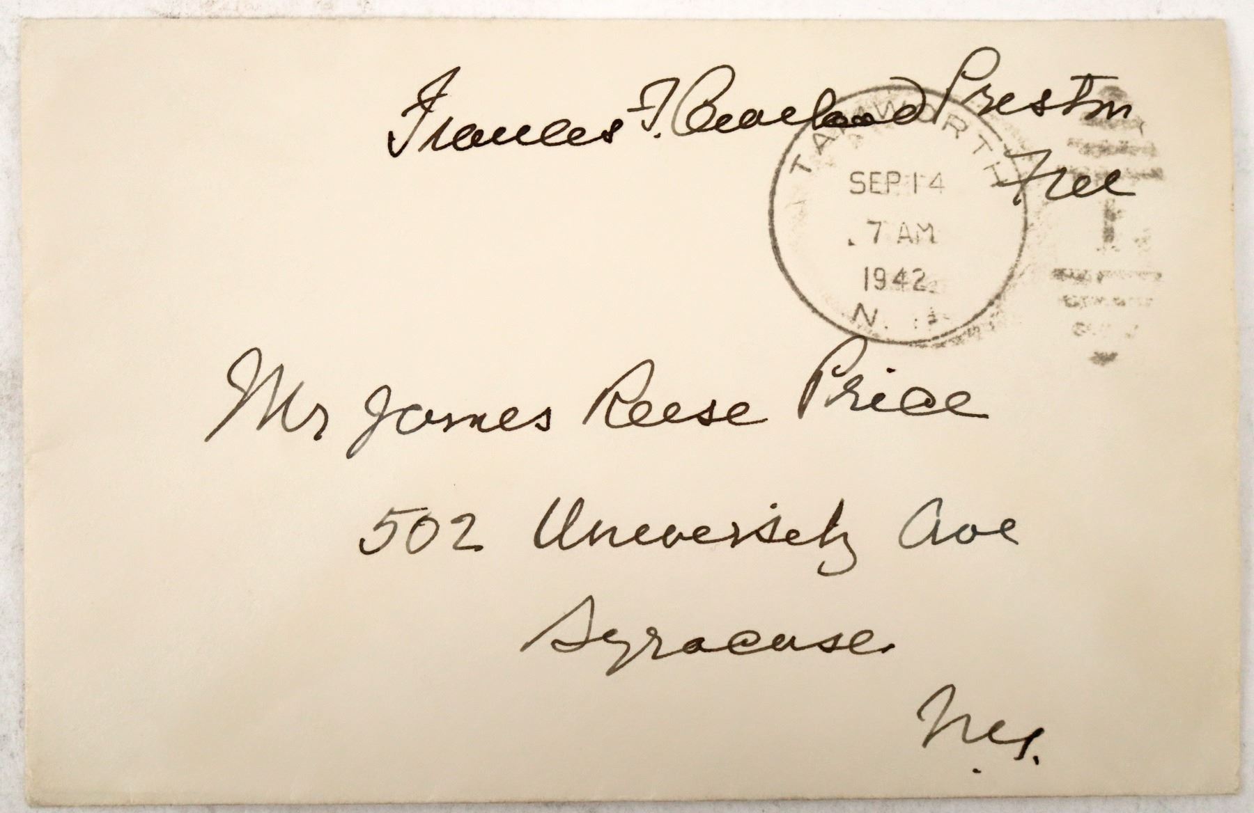 1942 cover with Frances Cleveland Preston autograph at top. First Lady 1893-97.