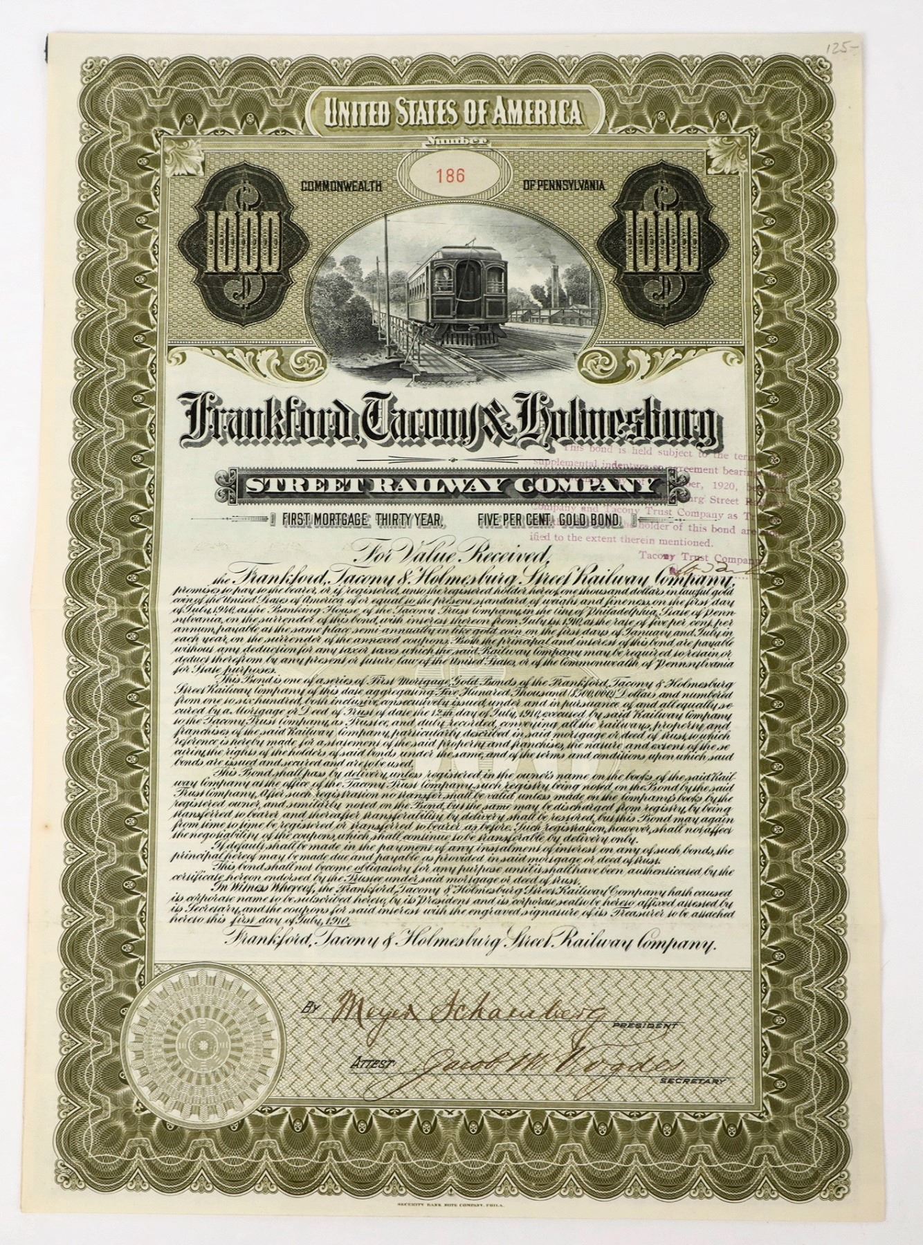 Frankford, Tacony, & Holmesburg Street Railway Co. Gold Bond, 1910 [198170]