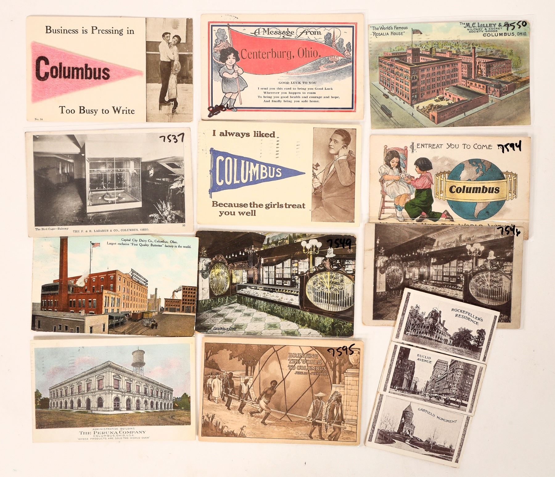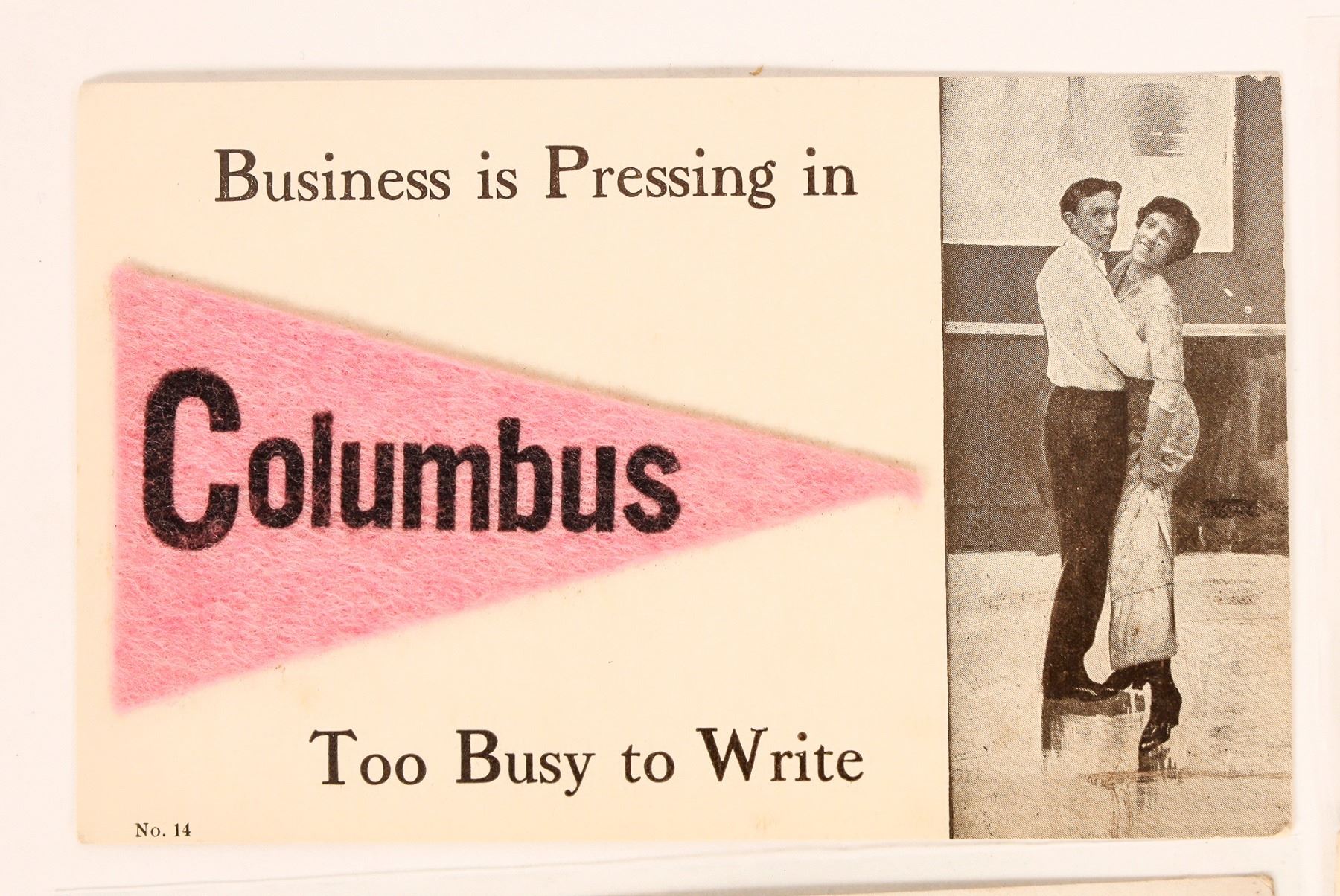 10 Columbus advertising postcards. Bott Bros., felt & printed pennants, F & R Lazarus, Peruma Co., Capital City Dairy, Regalia House etc.[ Columbus Ohio