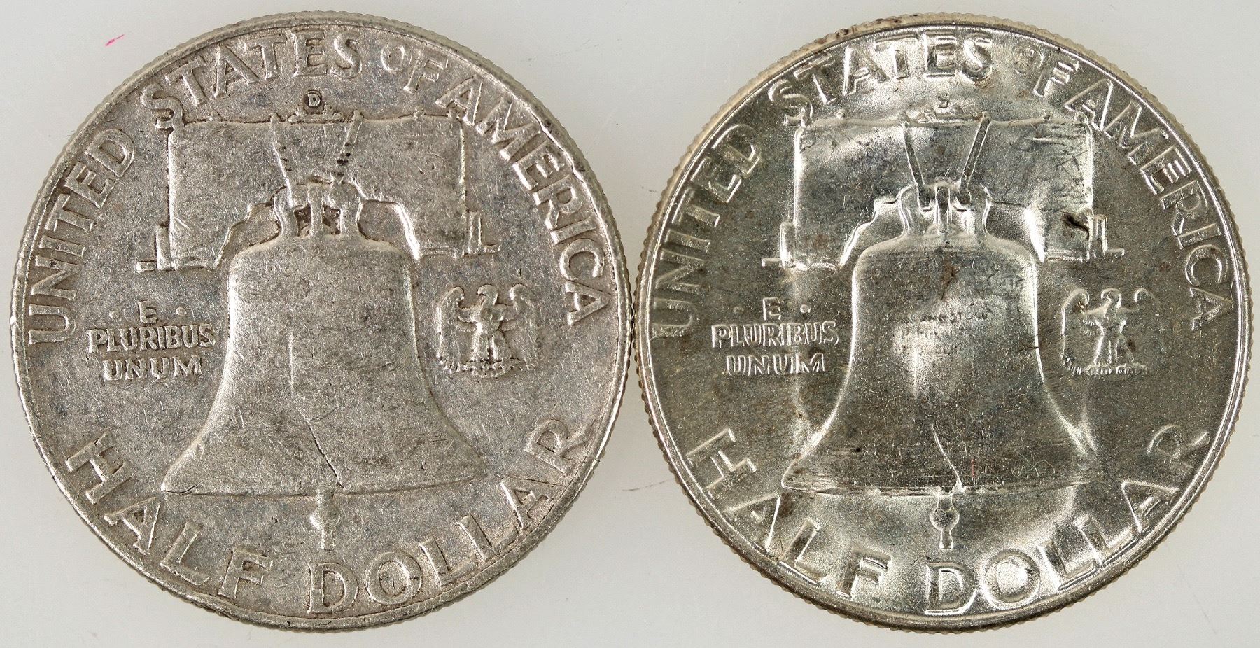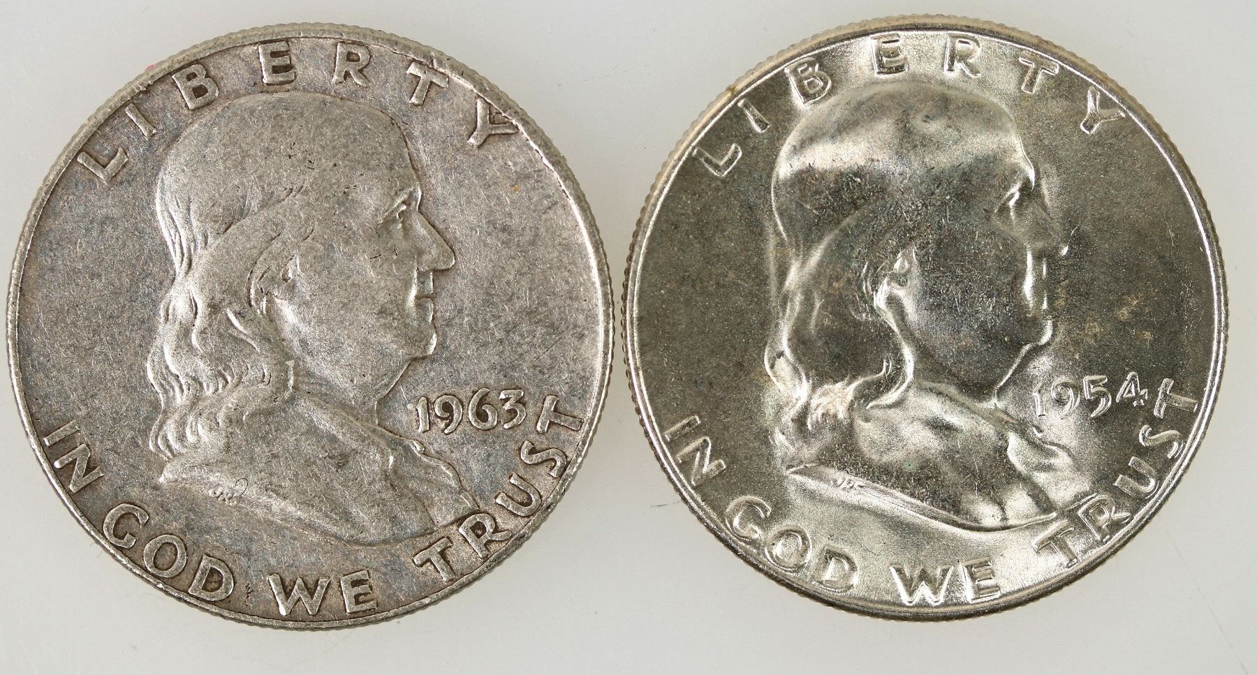 Lot of two coins listed as error coins by the consignor: 1954-S/S; BU condition; 1963-D/D; EF-AU condition.