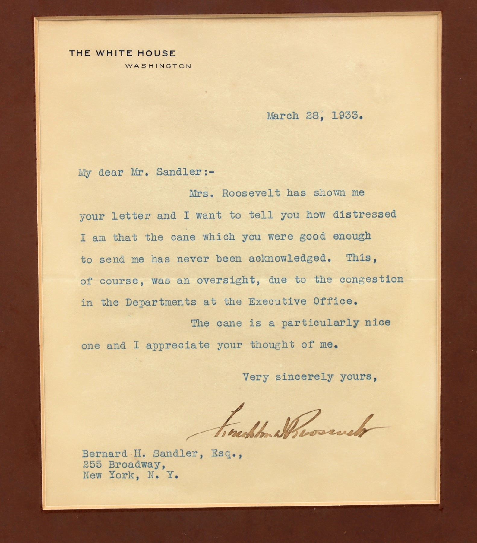 22 x 16" framed. Franklin Roosevelt served as the 32nd president of the US from 1933-1945, so this letter is from his first year in office.
