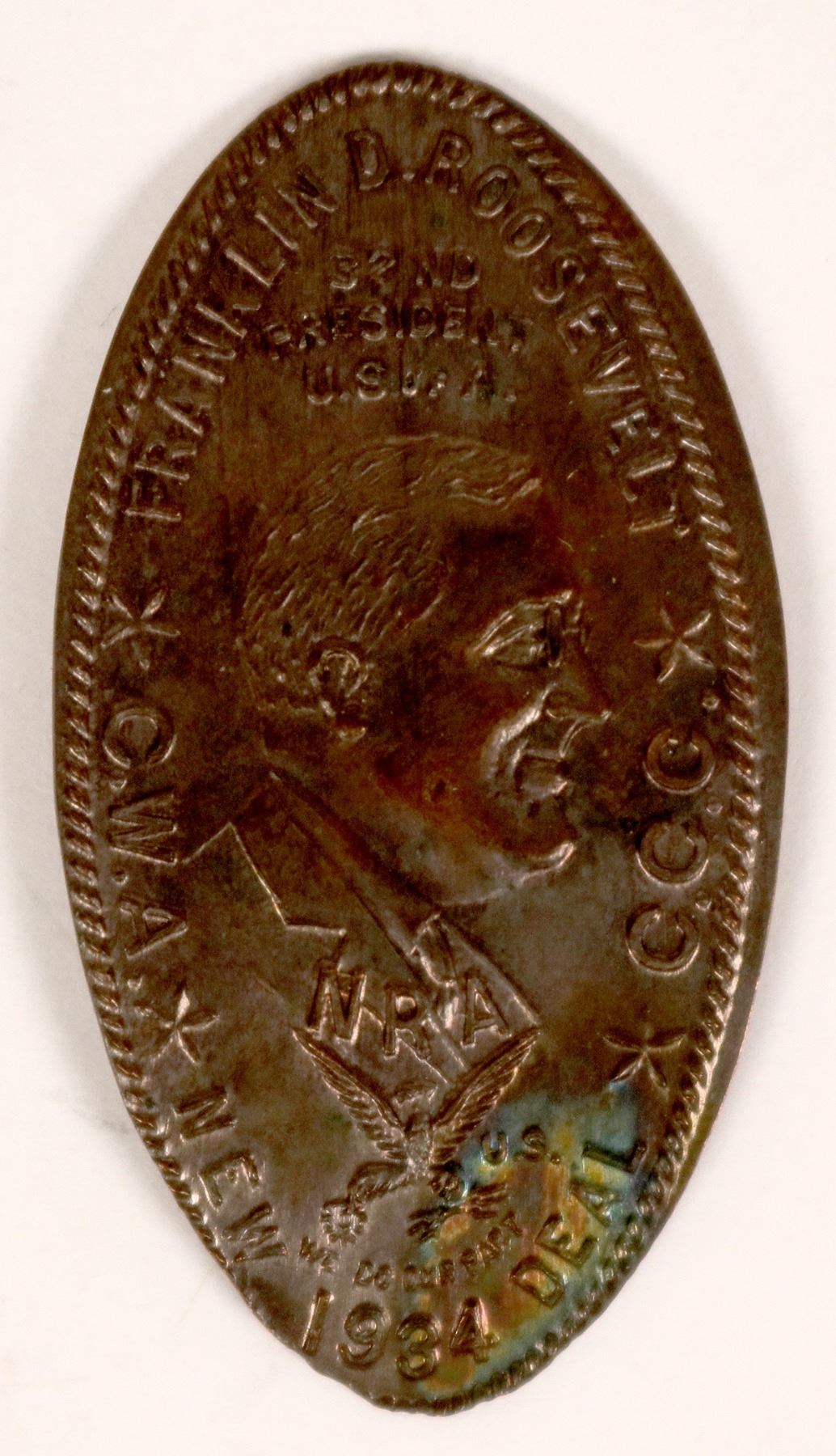 Franklin D. Roosevelt / 32nd / Pres. / U.S. of A. / C.W.A. / C.C.C. / N.R.A. / We Do Are Part / New / 1934 / Deal.