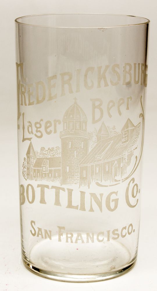 "Fredericksburg / Lager Beer / Bottling Co. / San Francisco." Etched with building (brewery?) in center. 4".