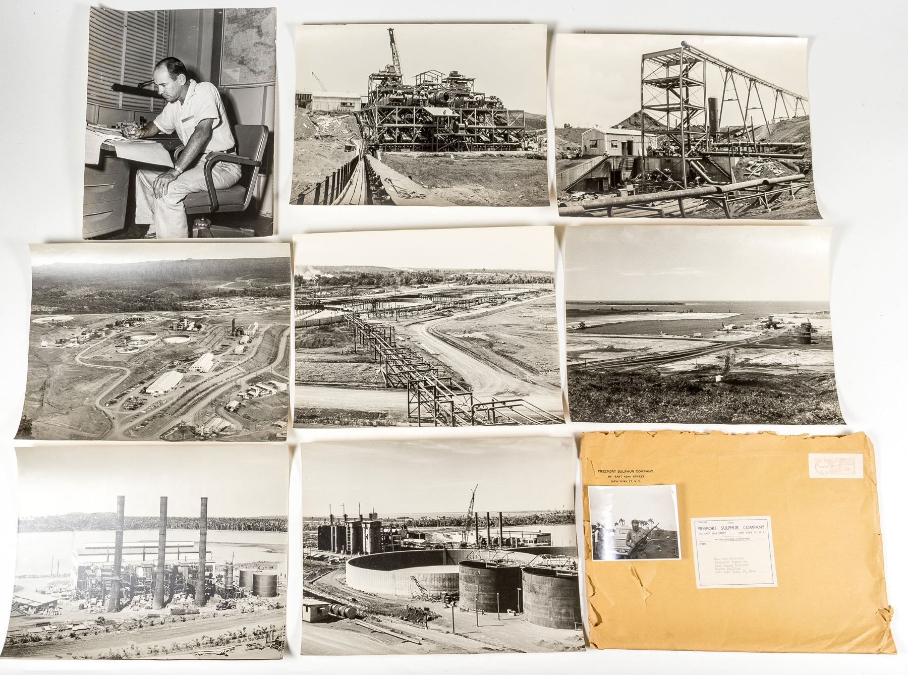 Important group of photographs from Freeport Nickel mine at Moa Bay, Cuba. This group of 11 x 16 photographs consisting of approximately 10 views shows Freeport's nickel cobalt mine at Moa Bay Cuba. One small additional 4 x 5" snapshot tells the story of a Cuban gorilla, soldier of Fidel Castro, showing a rifle with members of the mine staff in the background probably taken at the takeover of the mine in 1960. The large photographs are professional views of the plant at Moa Bay. This is an important group illustrating the difficulties of international mining in unsettled political environments.