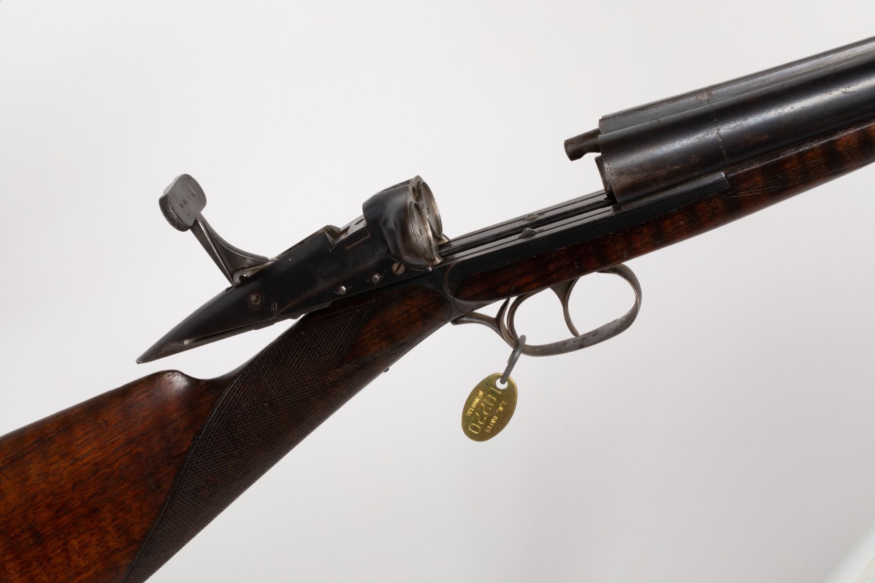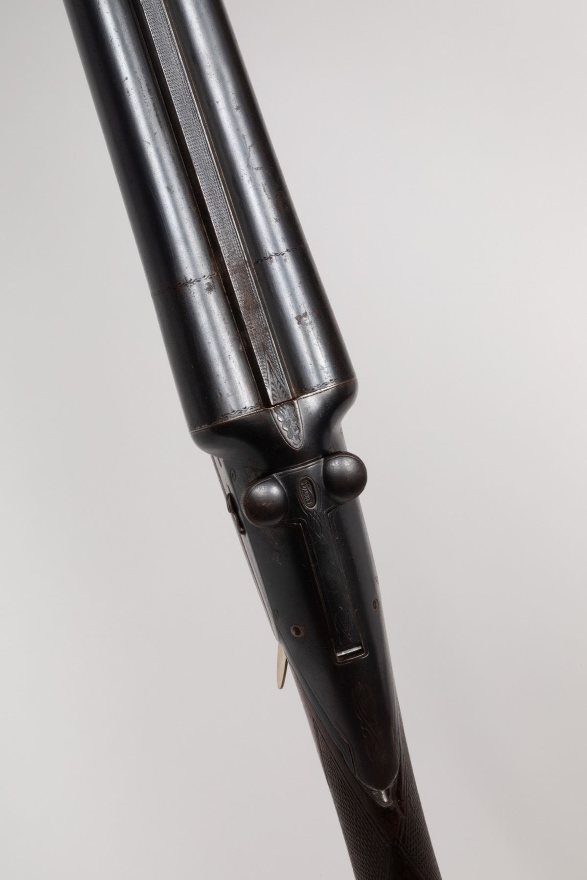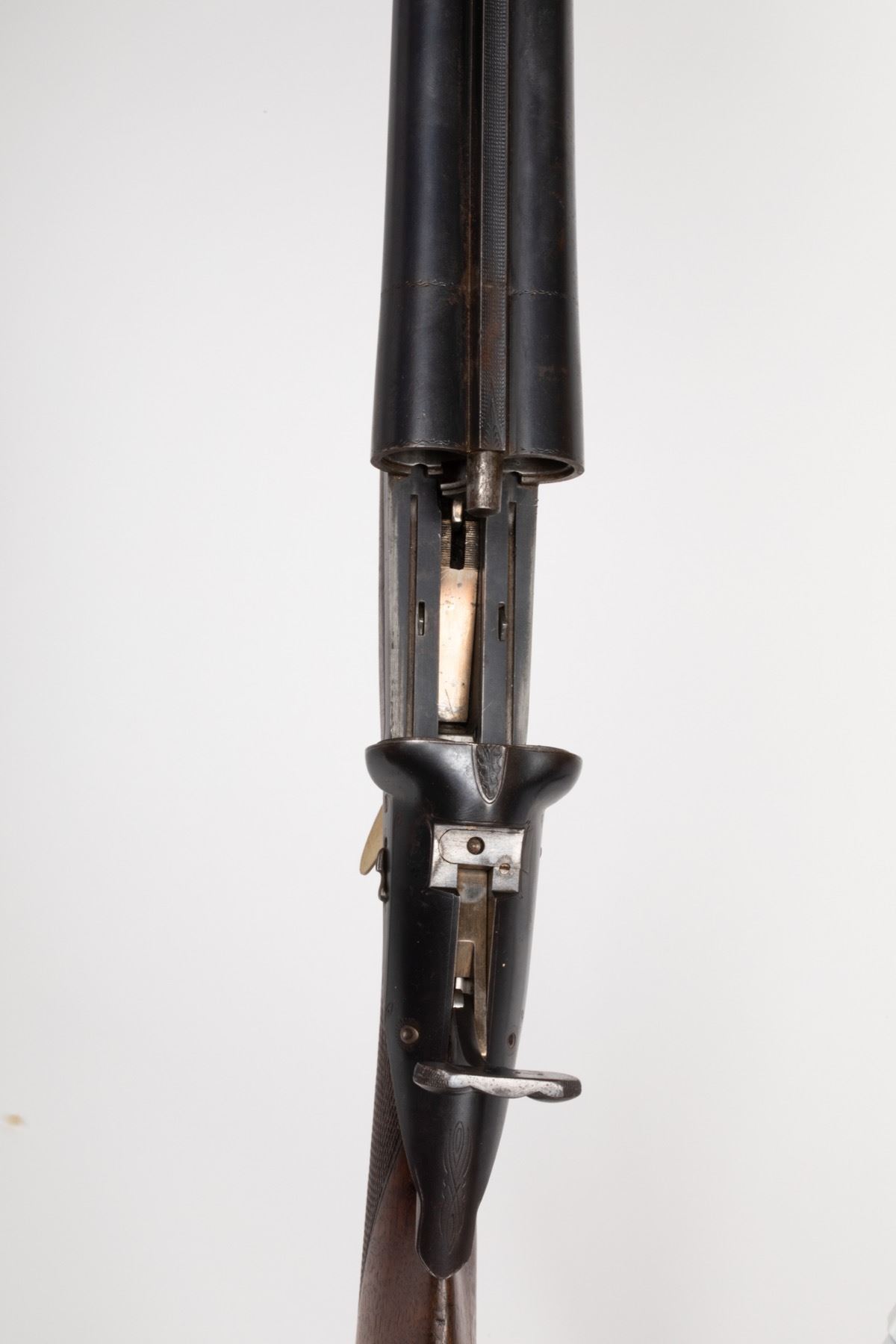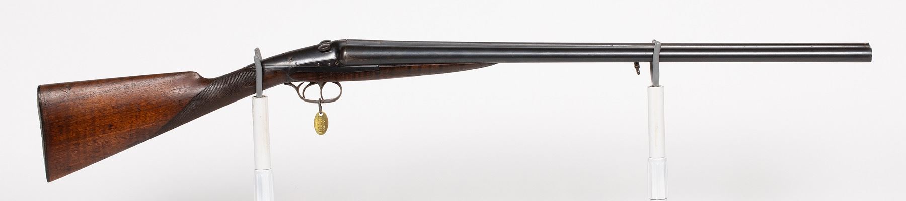 Shotgun, French, Le Fusil Darne, Brevette, 16-gauge, SxS Shotgun, slide shotgun, dual triggers, checkered pistol grip, metal butt plate, very unusual, black-powder, bead front sight, bar in wood stock, rare. SN: B39C, JMD Oval Tag: 10220, Condition: Excellent, >> FFL IS REQUIRED <<