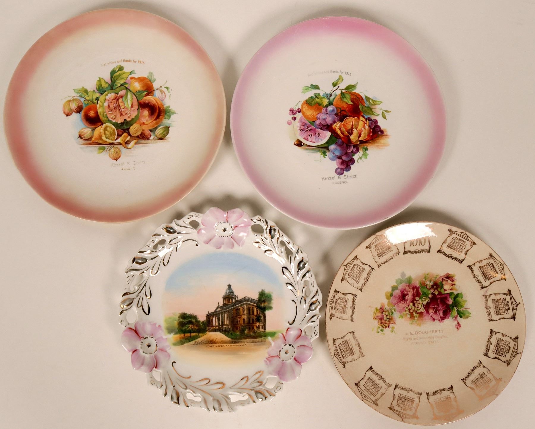 Two with images of fruit from Kinzel & Steitz, Fresno. one of Court House, Fresno. One calendar for J. E. Dougherty, Fresno, 1913.