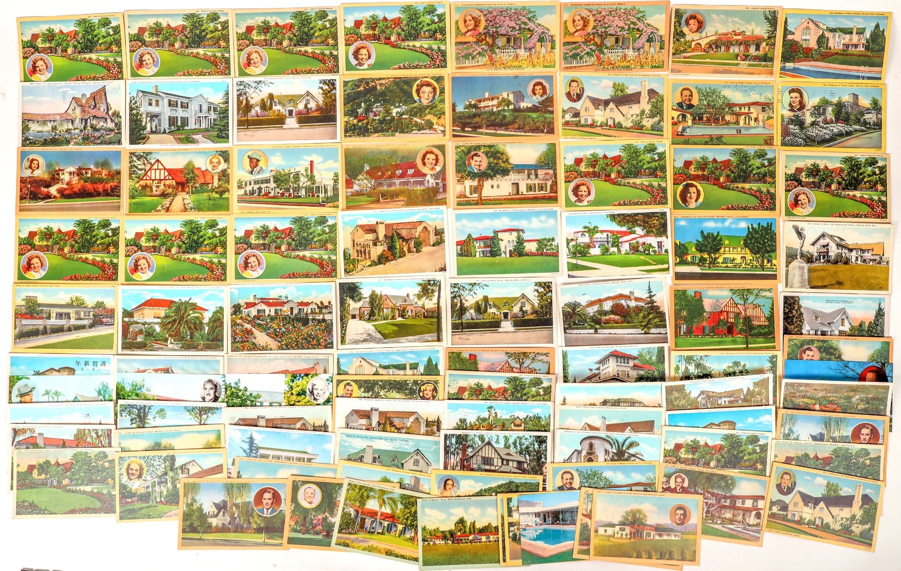 Lot of over70.Color w/wht borders. Postmarks I.E.; Altadena CA., Los Angels Arcade Annex & STA 1, Hollywood STA, Compton, Santa Monica, Chula Vista CA., Pasadena., A huge mix of stars homes and in some the stars are in the pic: Rudolph Valentino, Spencer Tracy Robert Taylor, Irene Dunne, , John Barrymore, Buster Keaton's Italian Villa and many more. California Hollywood 1920'-50's Ken Prag Collection