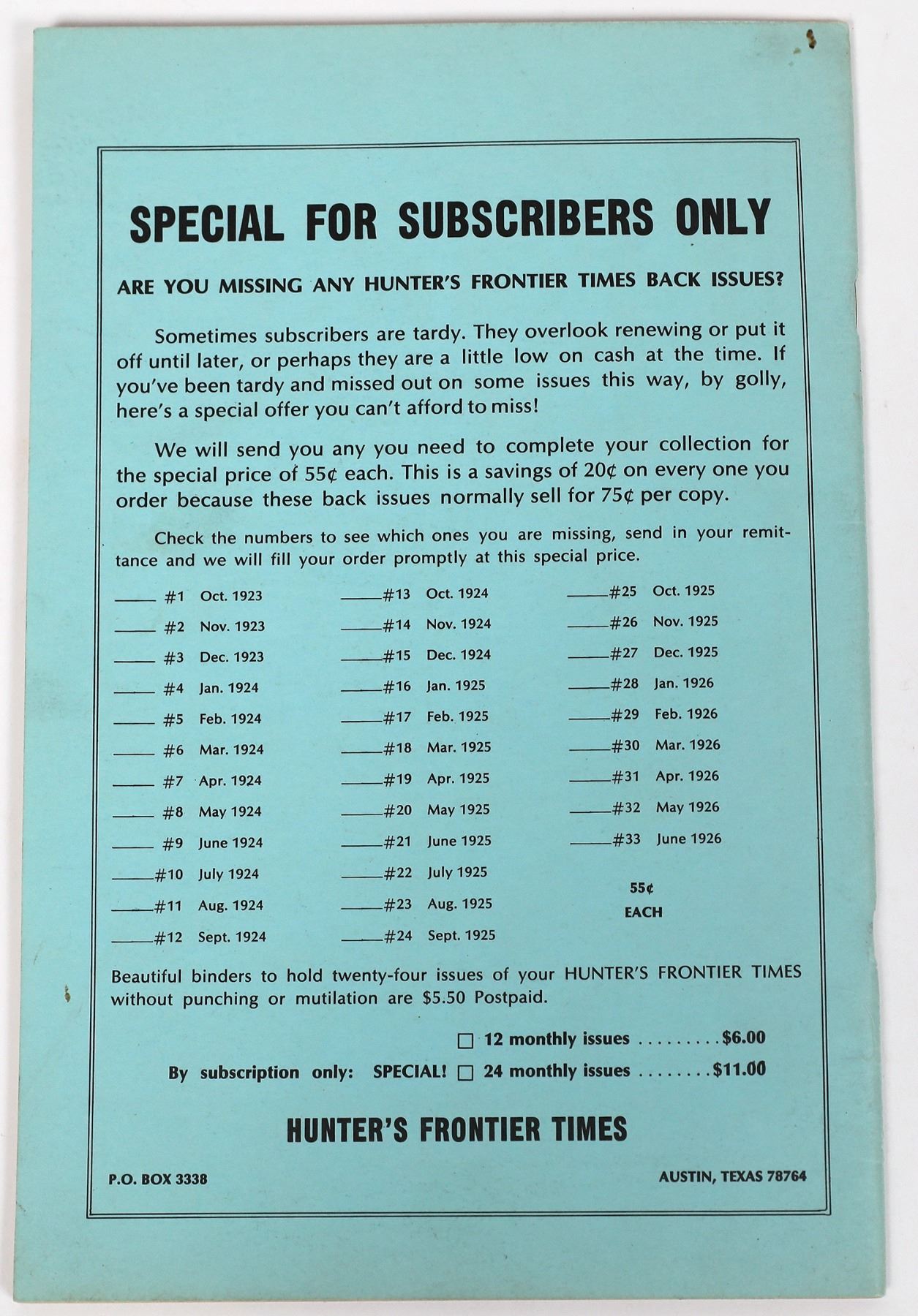 November 1926, Frontier Times by Hunter. Main article is The Vengeance of Rain in the Face. 10.5x7", nice condition.