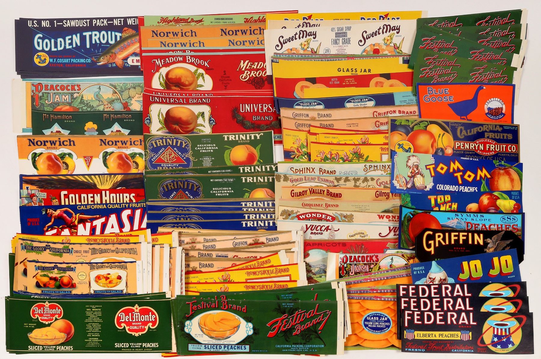 About 400 mostly California assorted fruit can labels. Melon, plum, currant, peach, apricot etc. 4x13".