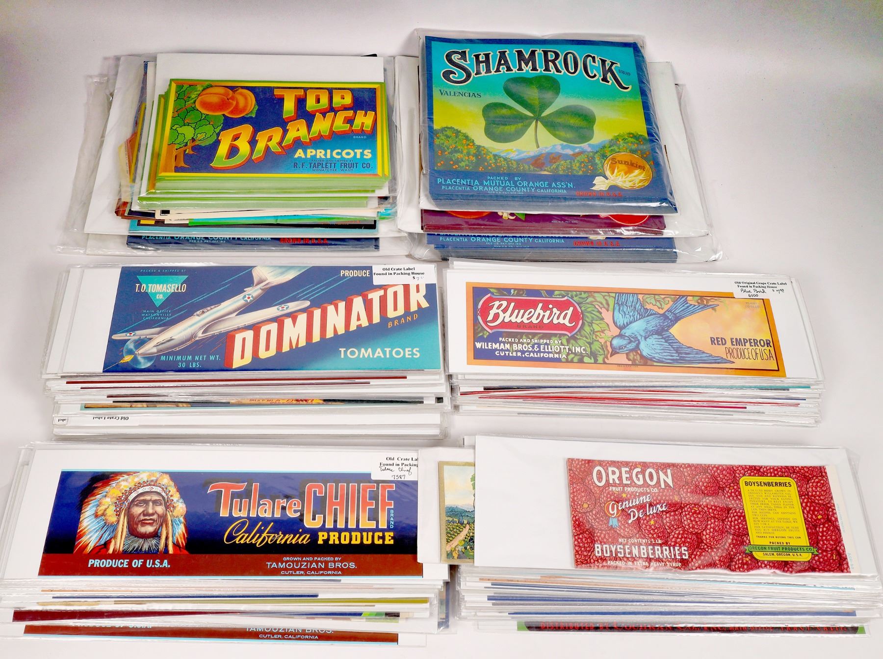 1000 or more fruit can and crate labels. Texas, Washington, Maryland. California-Fresno, Exeter, Sanger, Watsonville, Victor, Loomis, Ivanhoe, Placentia etc. About 25 lbs.