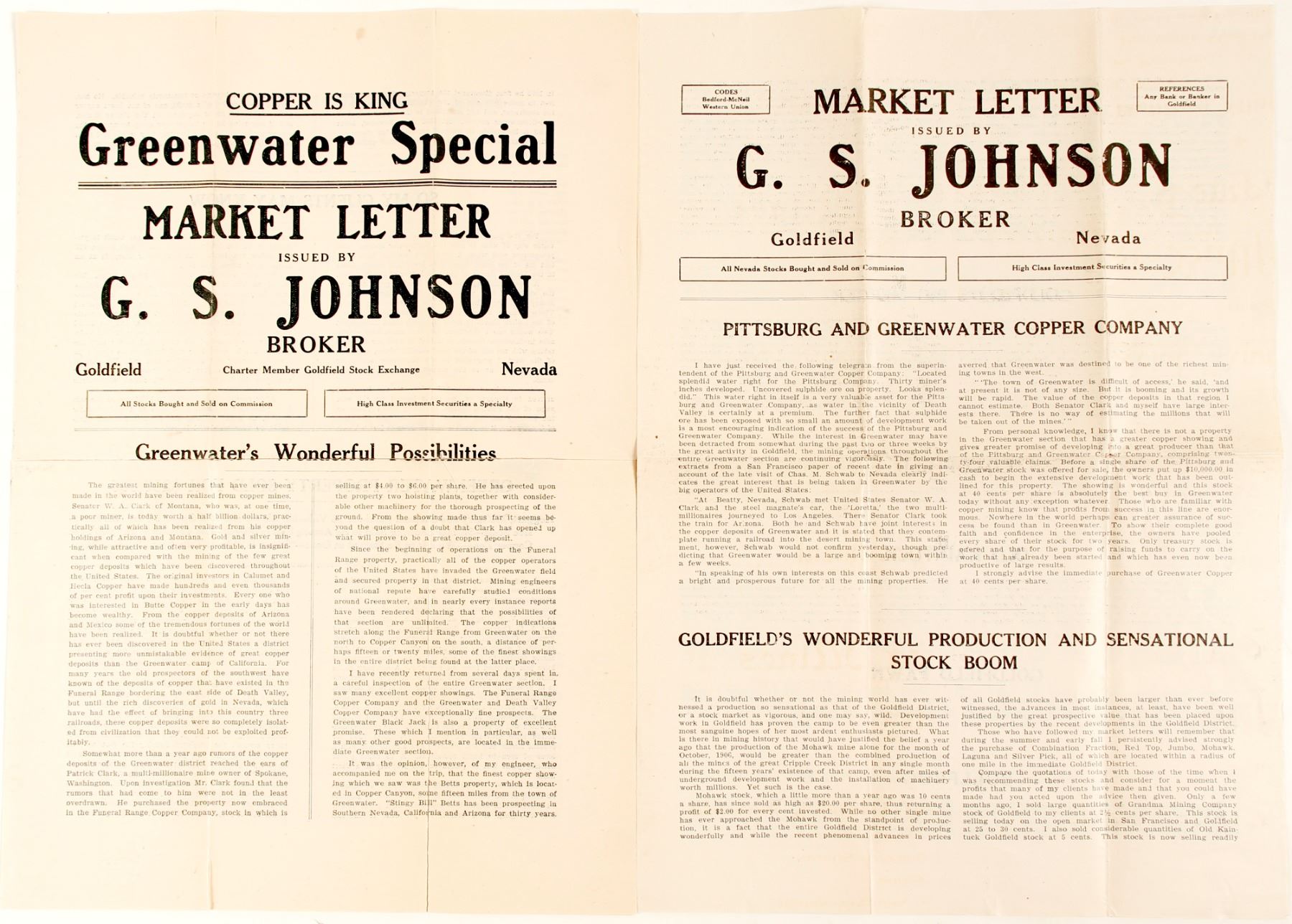 Two Market Letter issued by G.S. Johnson Nov. 17, 1906. One tear in half. City: Pittsburg State: Nevada Date: Nov. 17, 1906 HWAC# 79034