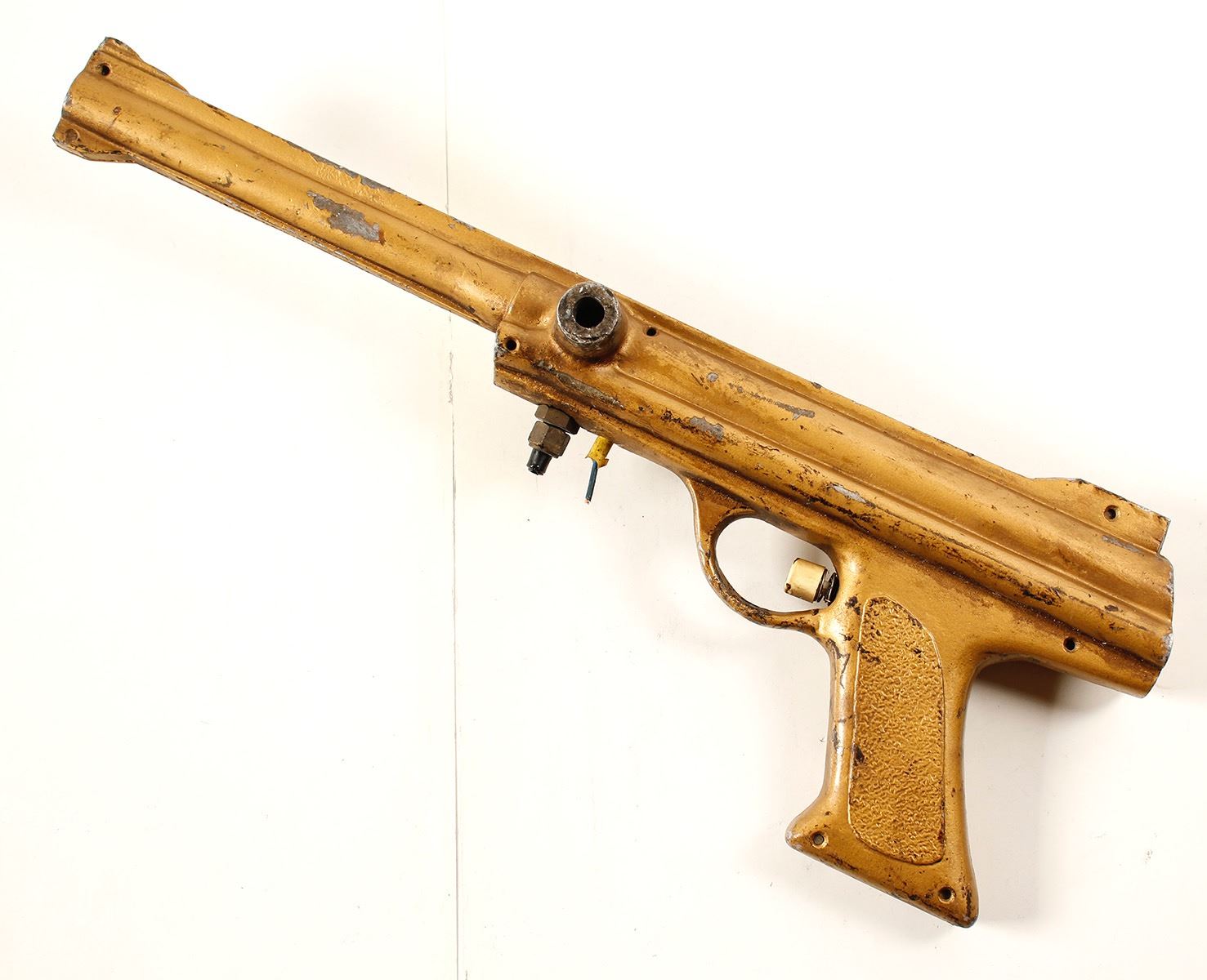 This is a gallery gun; 16 in. in length, air powered from a lodge near Lake Tahoe. Date: Location: HWAC# 56275