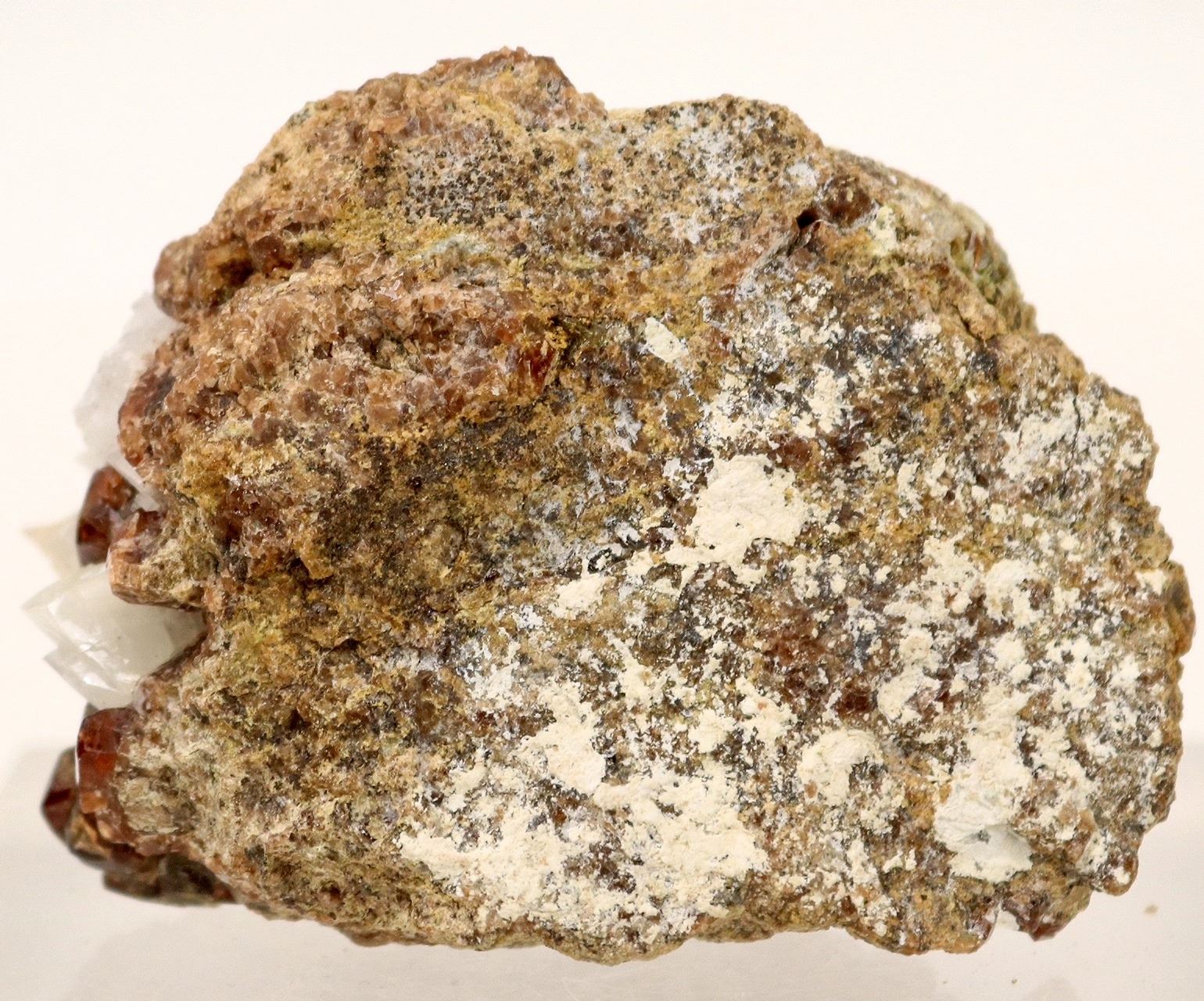 Garnet crystal and calcite specimen from Coyote Hills, Bishop, Calif. Sparkling red garnet mixed with white calcite crystals. Approximately 3" x 2" x 1.5".