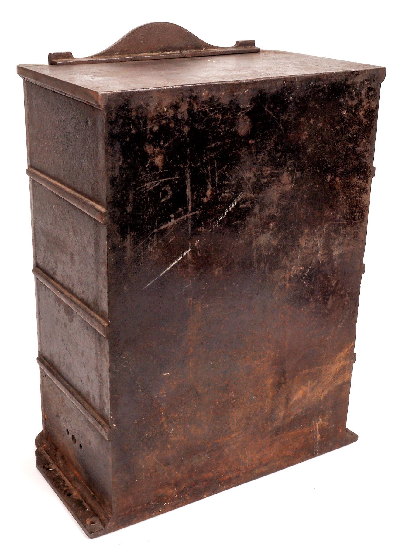 Coin change machines dating back to the 19th century are exceptionally rare. As with today they were an important part of commercial business, as folks needed to change higher demonization coins, in this case gold coins for lower denomination coins. In a very thorough search of international newspapers, it appears Garrett & Co. never advertised their machine. Specific news of gold coin changers were restricted to England during the 1902-1908 period. In 1902 mention was made in London of an upgraded gold coin changer that rejected base coins and showed the original inserted gold coin through a clear window until the change was proffered. The last mention we could find was in Nov 1908 where one of these machines was robbed out of a hotel in New Castle. It measures 9.5 x 14.5" and the bottom has 3 screw holes on each side to firmly attach the machine to a countertop. The face has embossed lettering in the cast iron. The one sovergn gold coin was inserted at left and the half sovergn at right. Each has separate change bins inside. The machine appears in working condition.