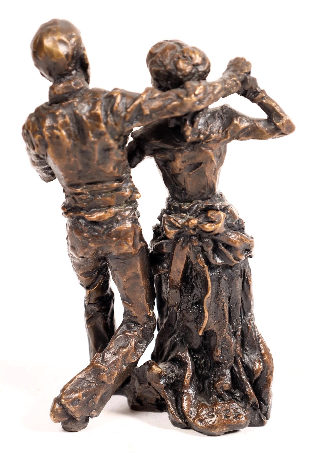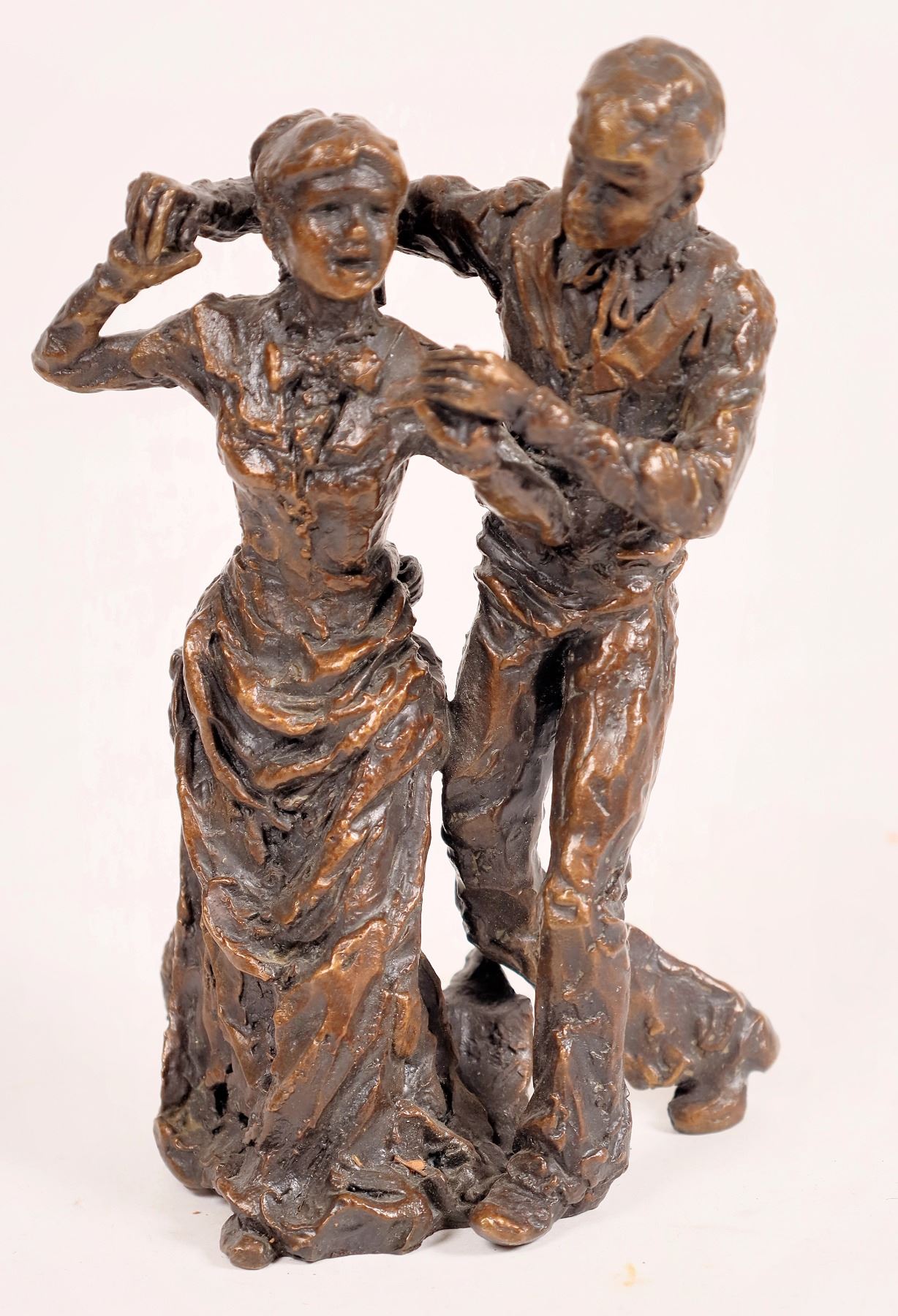 Bronze by Gary Schlidt featuring a dancing couple. 6.5x3.5". " Gary Schildt was born in Helena, Montana, in 1938. As a Blackfeet descendant, Gary grew up on his family's ranch on the Reservation near Browning". from Wikipedia