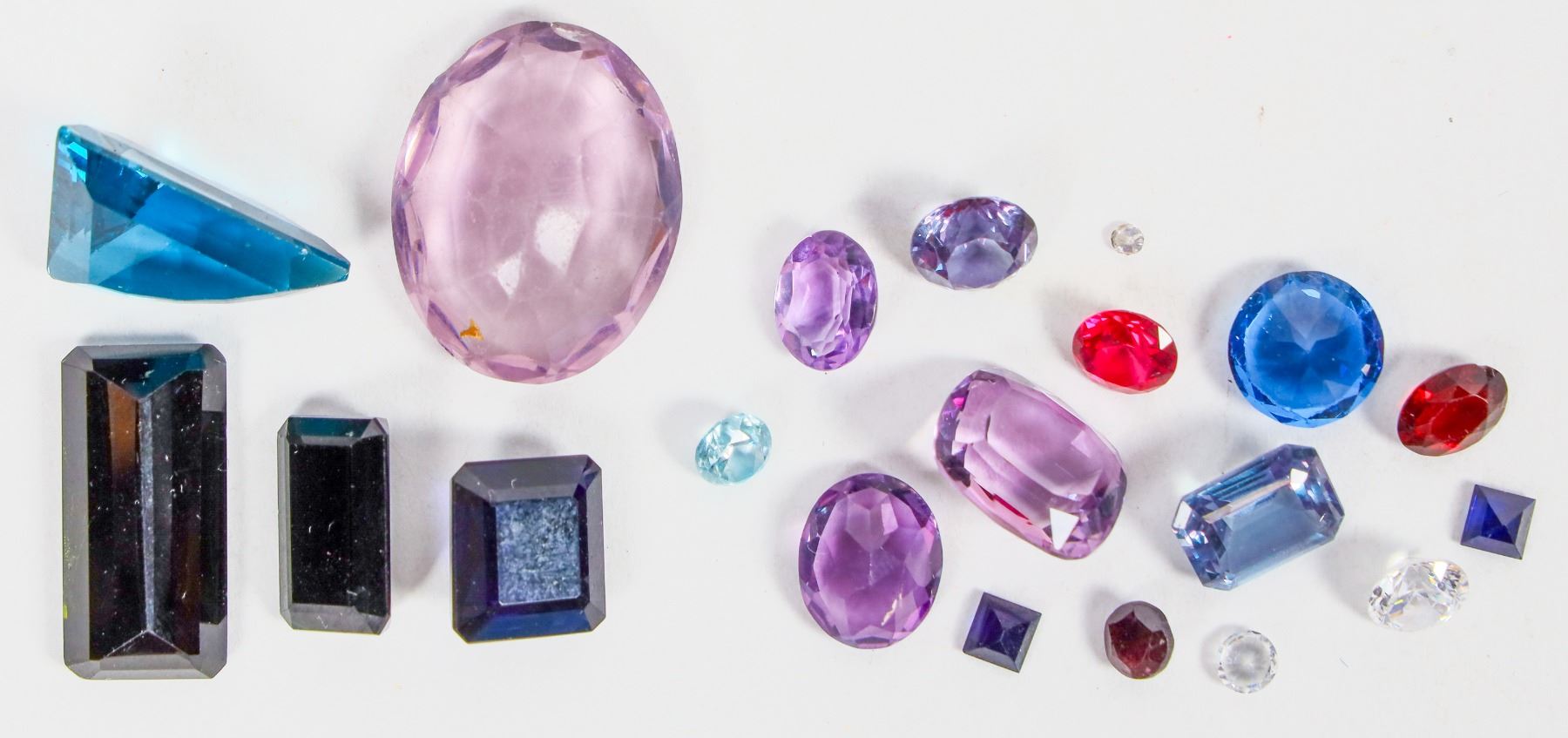 20 Assorted gemstones include 2 green tourmaline, 1 tanzanite, amethysts, rub, garnet, aqua marine, and more. See photos. Beautiful assortment. Ready for jewelry.