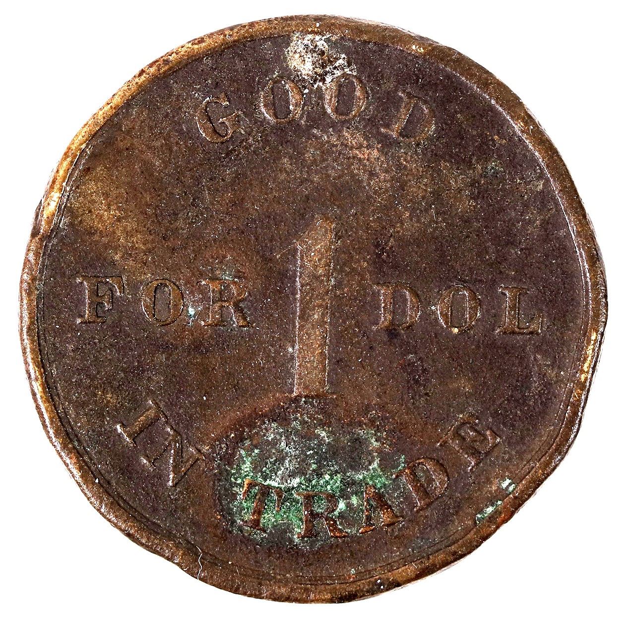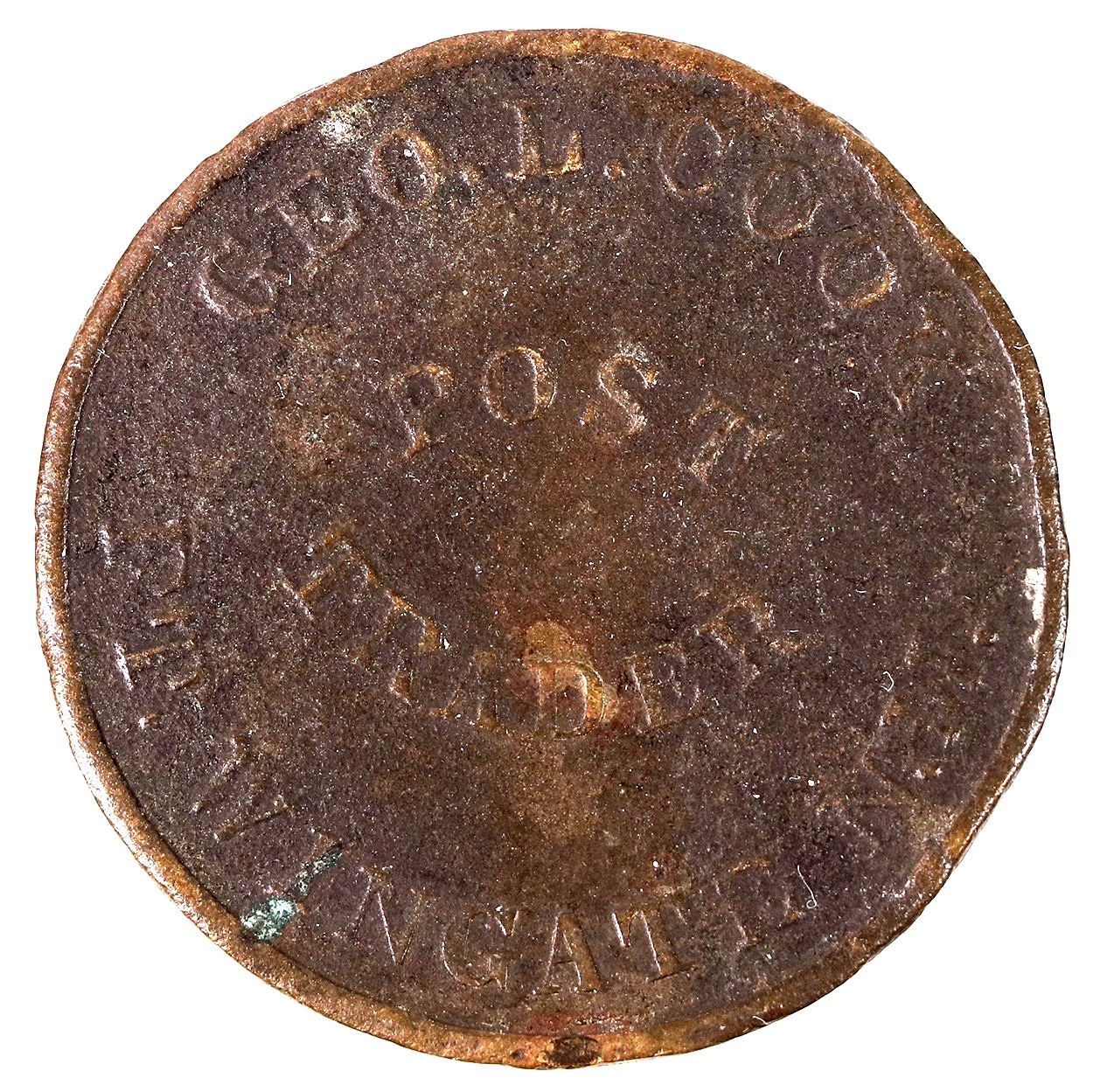GEO. L. COOK / POST / TRADER / FT. WINGATE N.M. // GOOD / FOR 1 DOL. / IN TRADE; Br., rd., 37 mm. Dug; circa 1871.