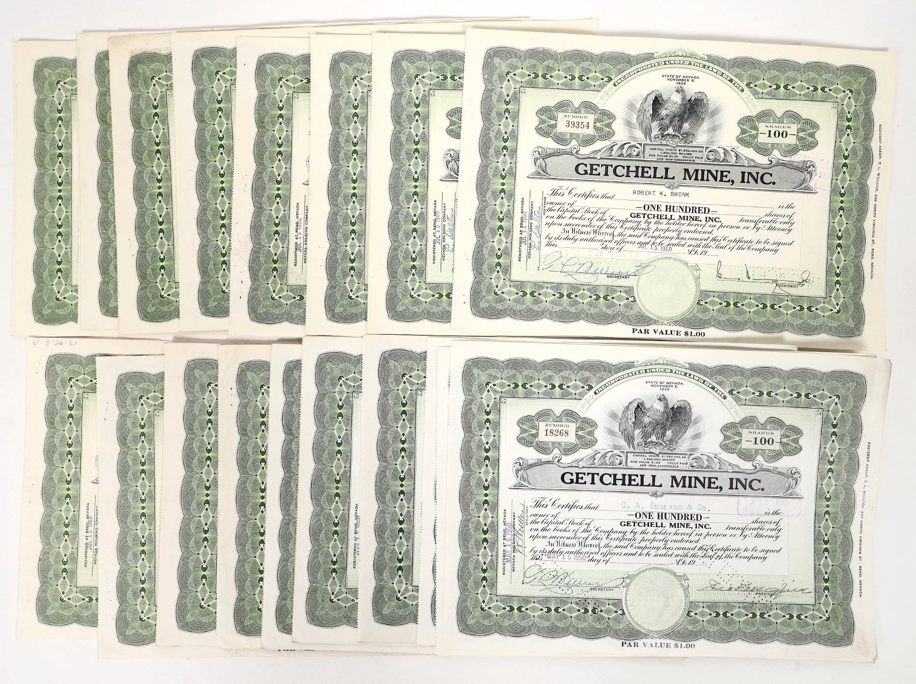 20 each, 1950-60 Getchell Mine stocks signed by George Wingfield Sr. and Jr.