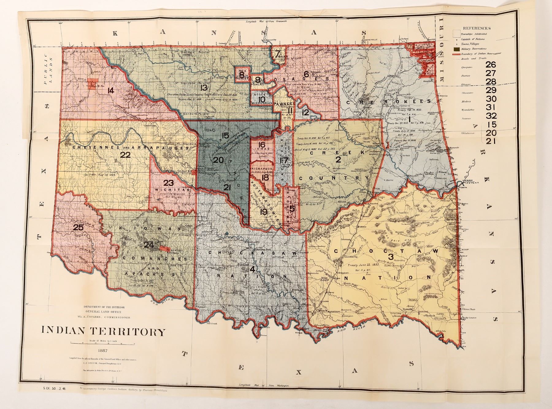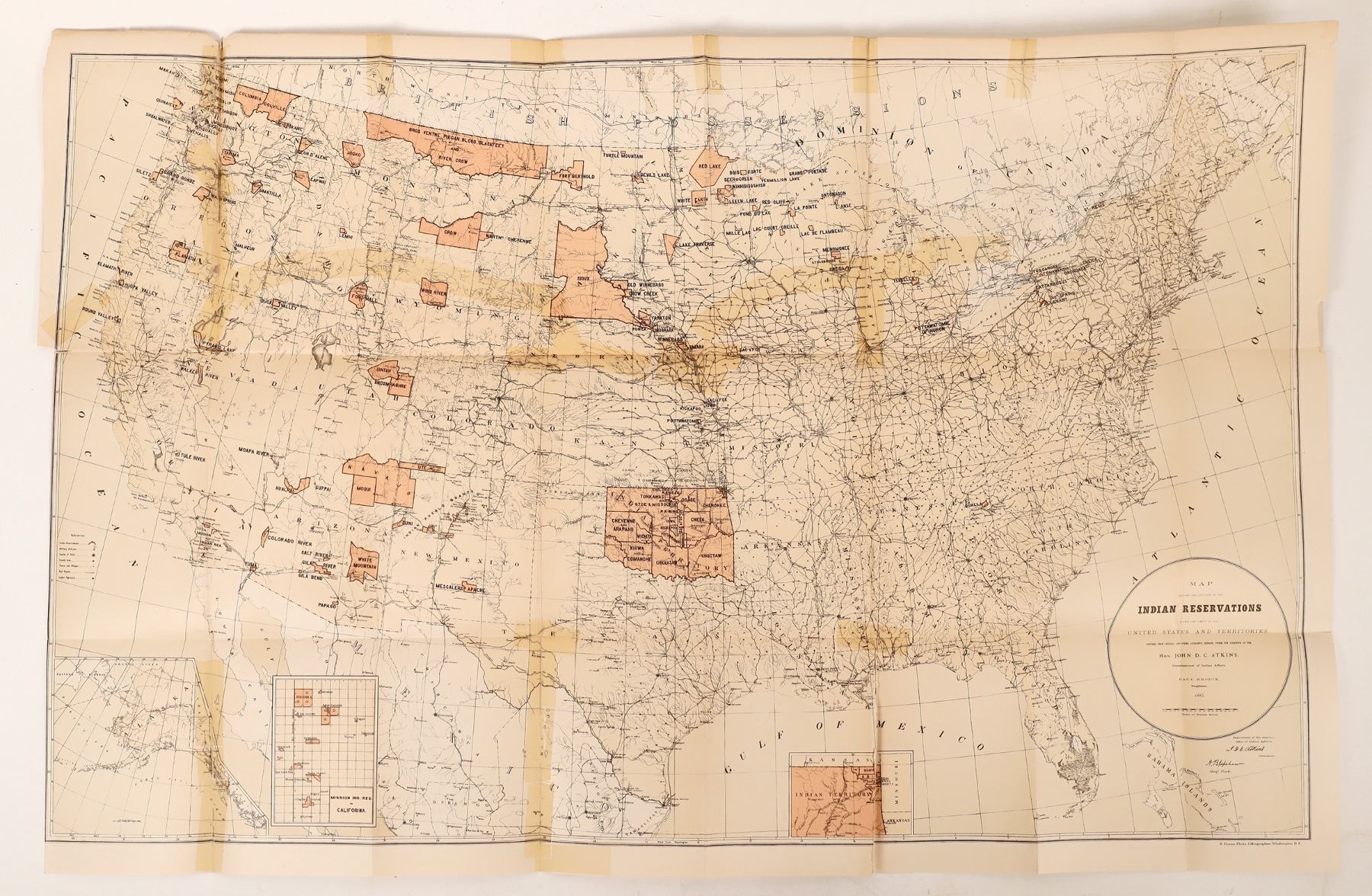 This is a publication put out by the U.S. National Museum and authored by Thomas Donaldson. This 939 page book has an 1887 copyright. There are also several loose maps, showing the various tribal lands, It feels like it may have been rebound and is in nice condition. VERY RARE. 1887
