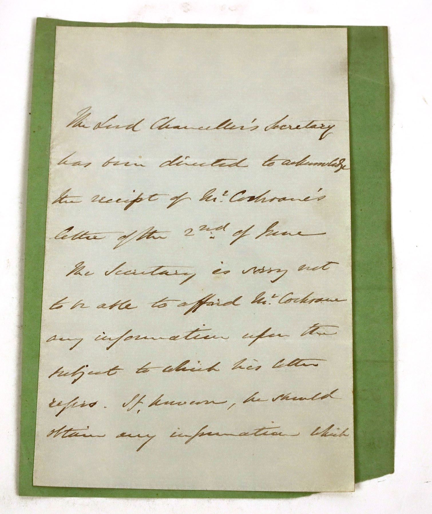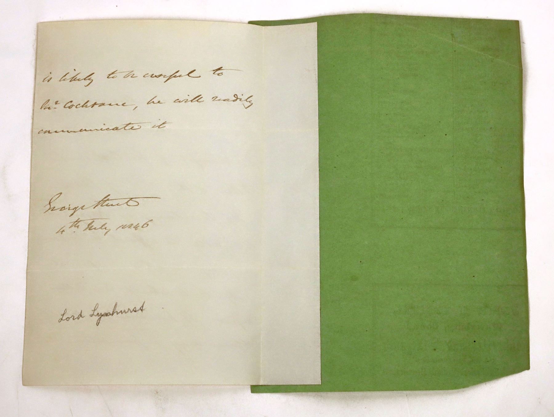 1846 letter signed by Ohio Congressman George Street. 7.5x4.75", attached to backing on border