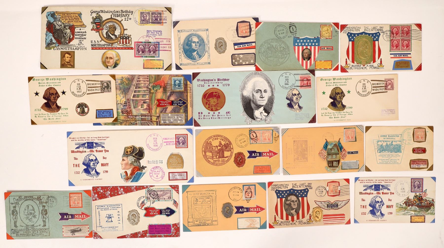 17 special hand made cachet covers by Henry Stinemetts with mostly East Coast cancels, some US Navy. c. 1930's.