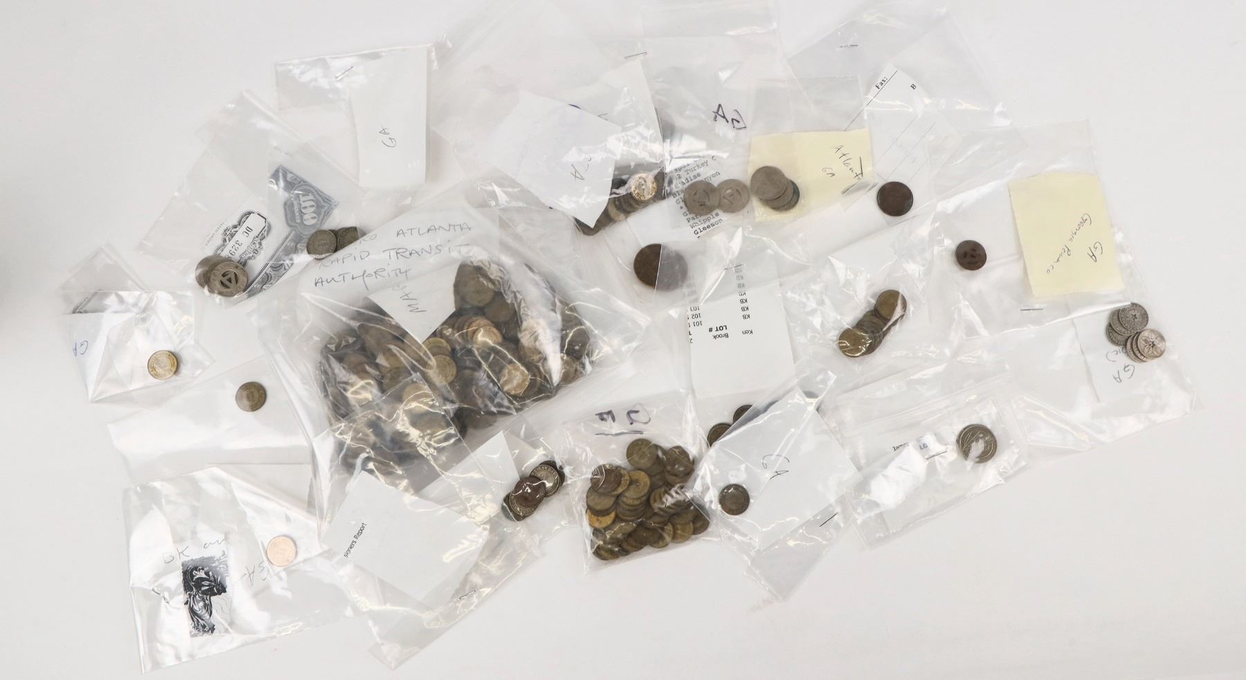 About 300 transportation tokens from Georgia. Metro Atlanta Rapid Transit Authority and others. 2.6 pounds.