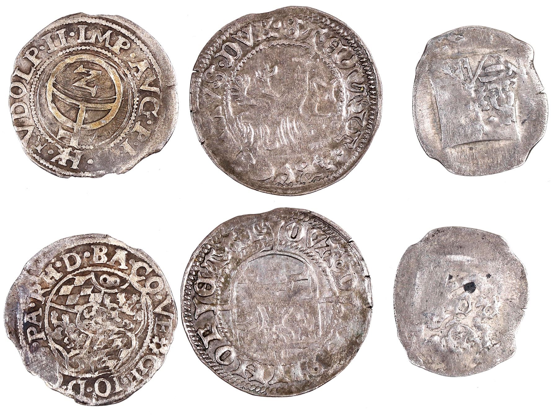 Lot of three German States coins: 1) Amberg: Rupert I, pfennig 1350-90; VF; 2) Veldenz: George Johann (1544-1592); 1/2 batzen; VG. 3) Pomerania: shilling; Bogislaus X (1475-1523); Eagle crest with griffin.