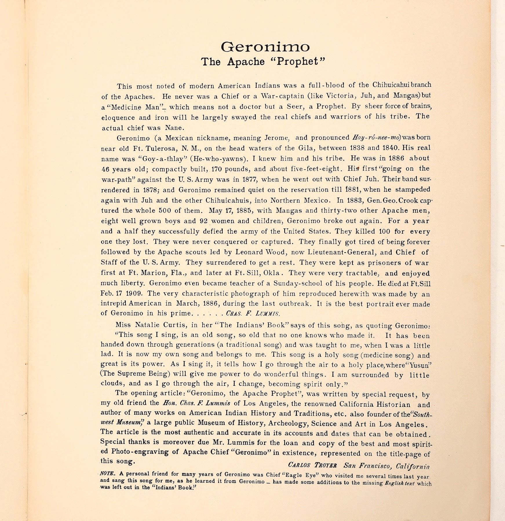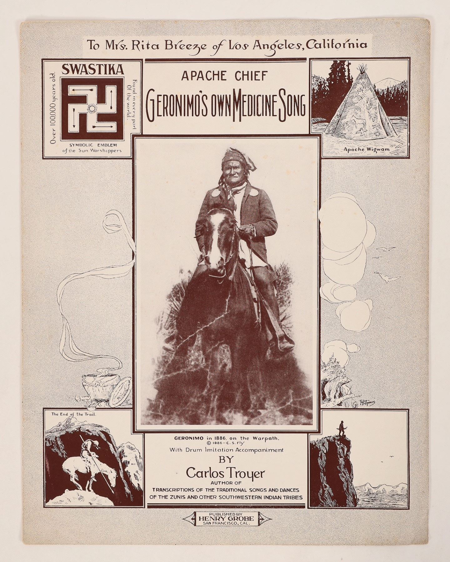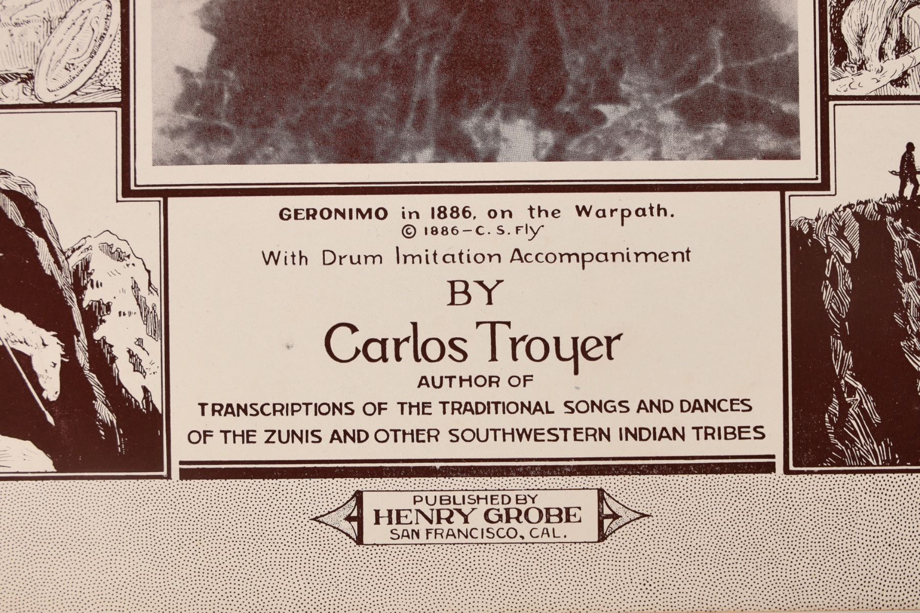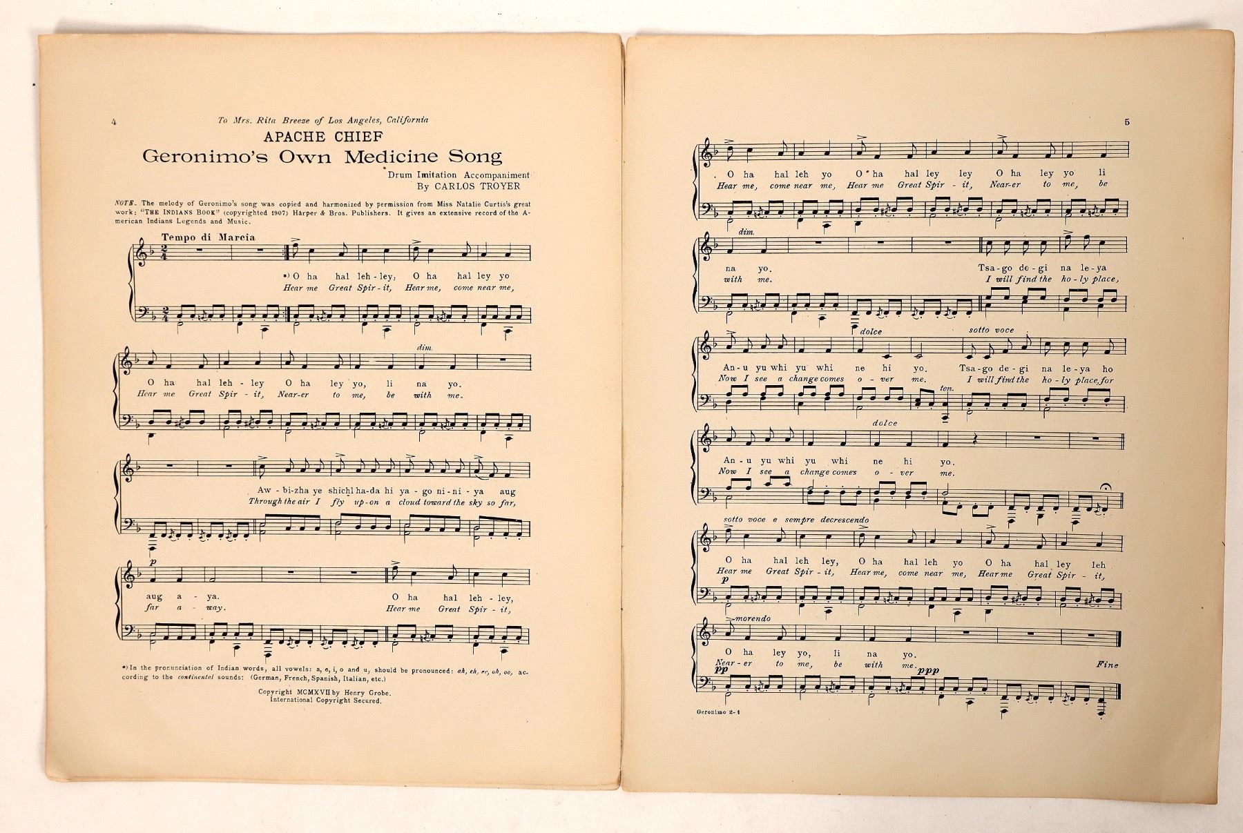 1917 Geronimo's Own Medicine Song Sheet Music by Troyer. Geronimo image on cover copyrighted in 1886.[