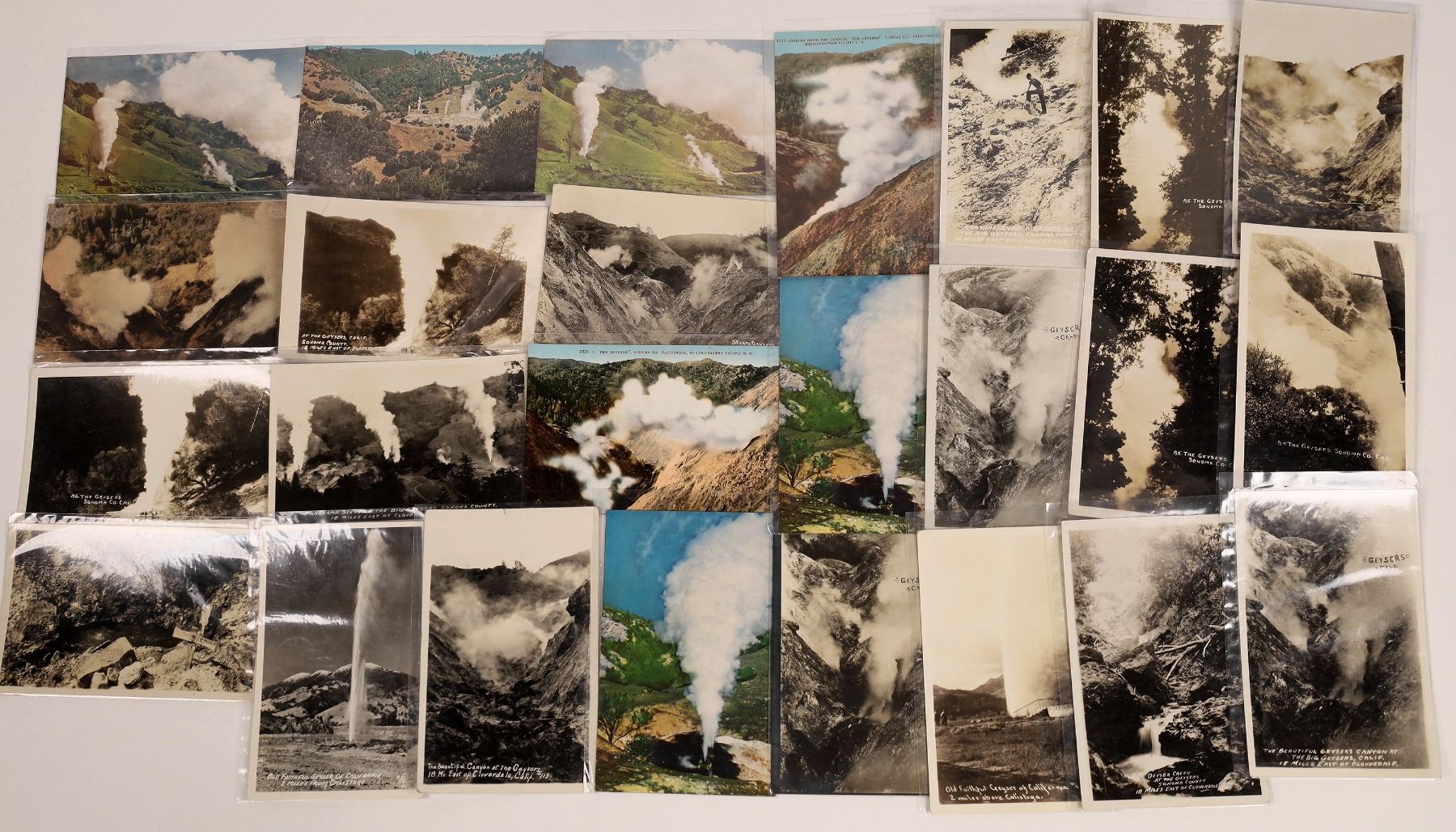 Lot of 25 postcards showing the geysers of Sonoma County California. Black and white and seven in color. Thirteen are white border cards. State:California City:Geyserville Date: Provenance: Ken Prag Collection