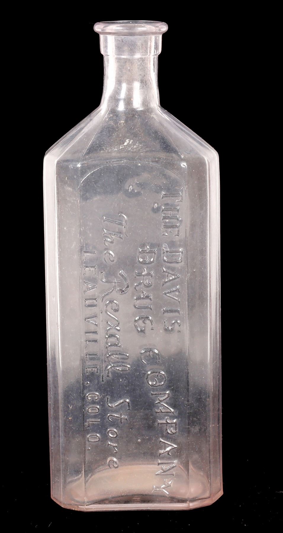 Giant 14 sided Embossed The Davis/Drug Company/ The Rexall Store/Leadville, Colo. This bottle will really standout among your other medicines. 8.5x3x2". Small base chip, no apparent cracks.