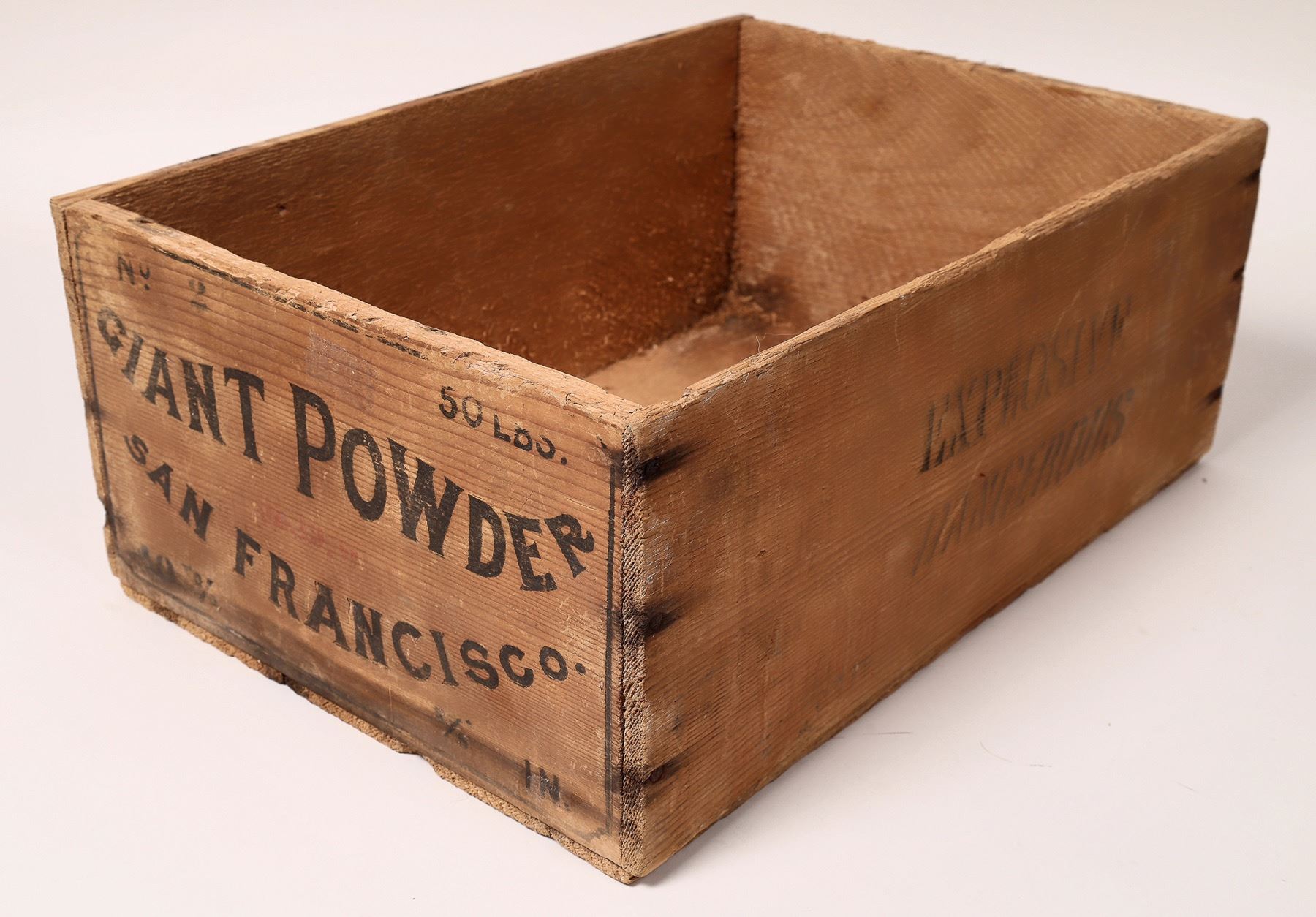 Rare c. 1870's. Giant Powder 50 Lbs., San Francisco. 40% wood powder box. 7x12x17".