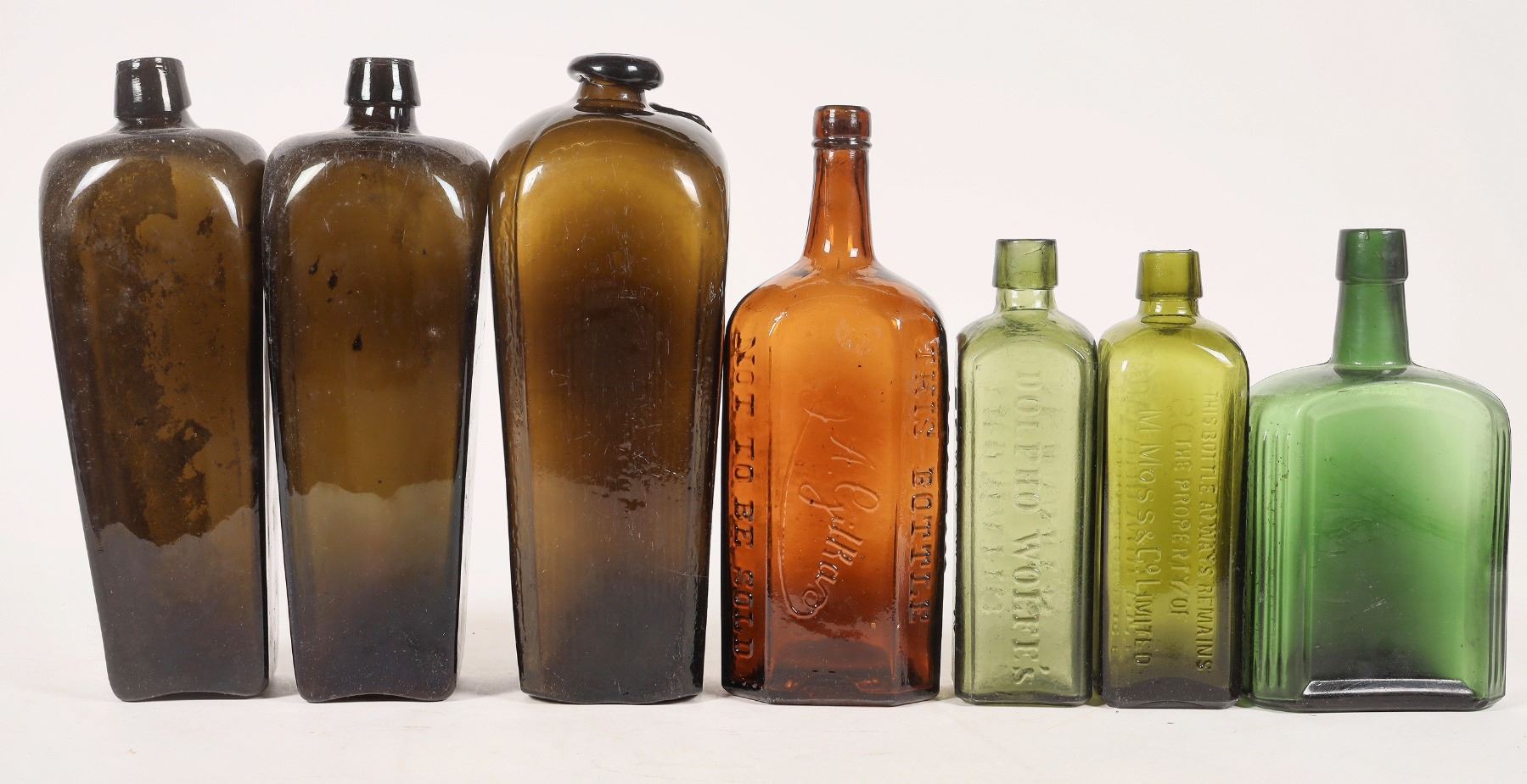 3 case gins, a nice J A Gilka/Berlin, Augauer Bitters, 2x Udolpho Wolfe's Schanpps. No apparent chips or cracks.
