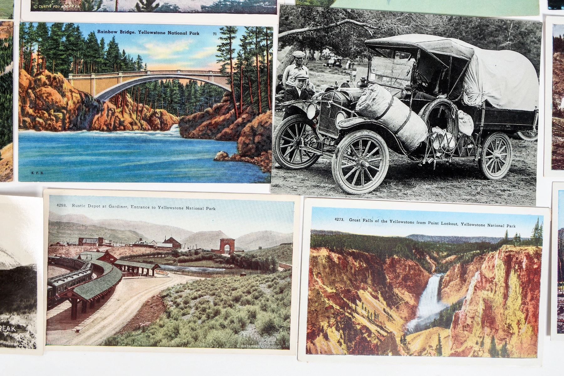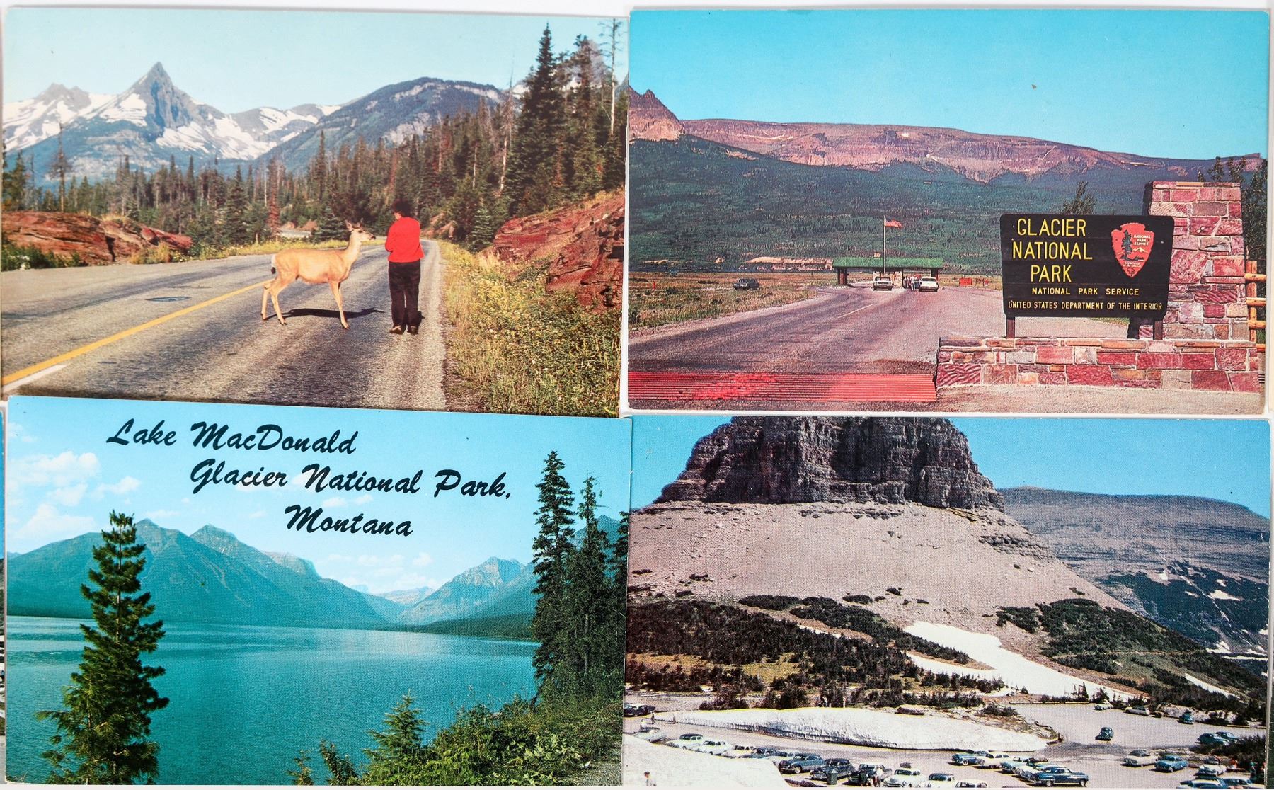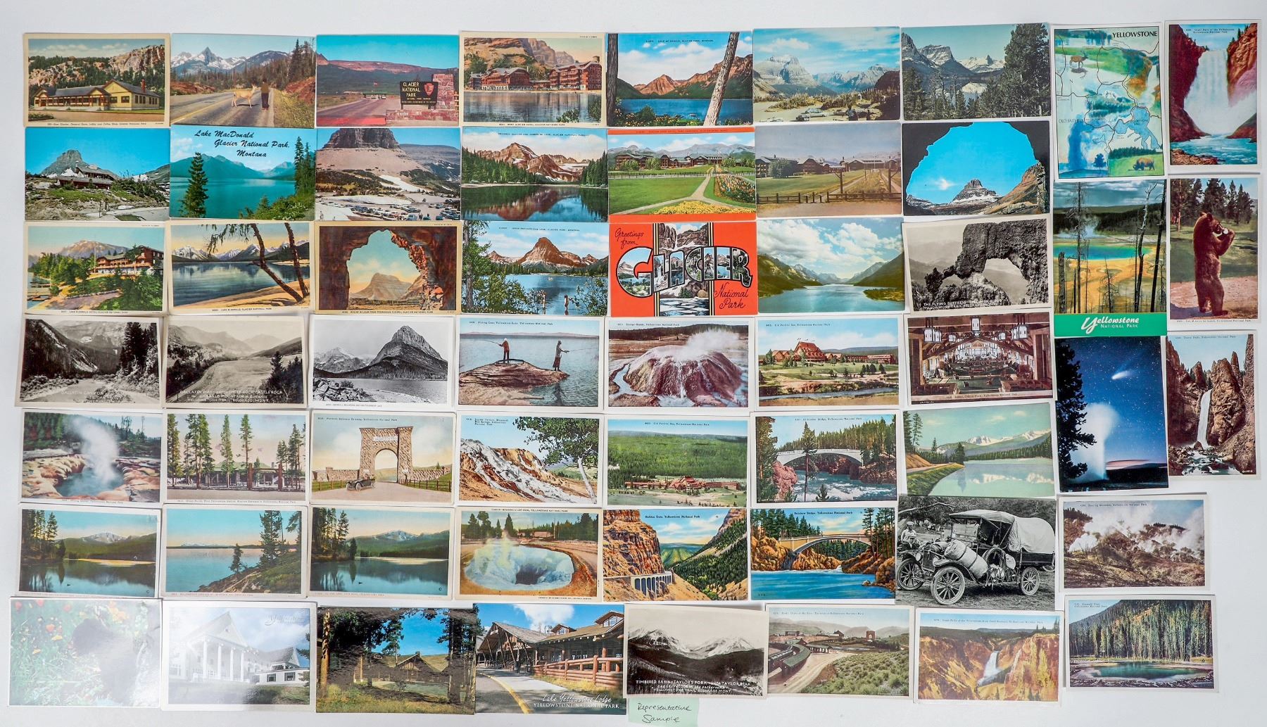 Lot of 140+. 1) 60 Yellowstone National Park. Early printed and modern. No RPPC. 2) 28 Livingston, Gardiner & Park County, Montana incl. 1 RPPC. 3) 8 RPPC of Yellowstone Trail, Belgrade, MT. 4) 46 Glacier National Park. Handful of RPPC. Also a rare set of 12 of flowers by W. Loos.