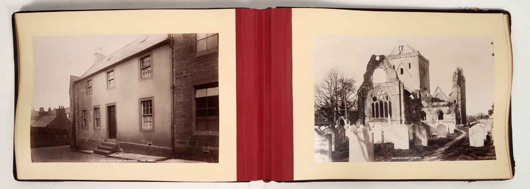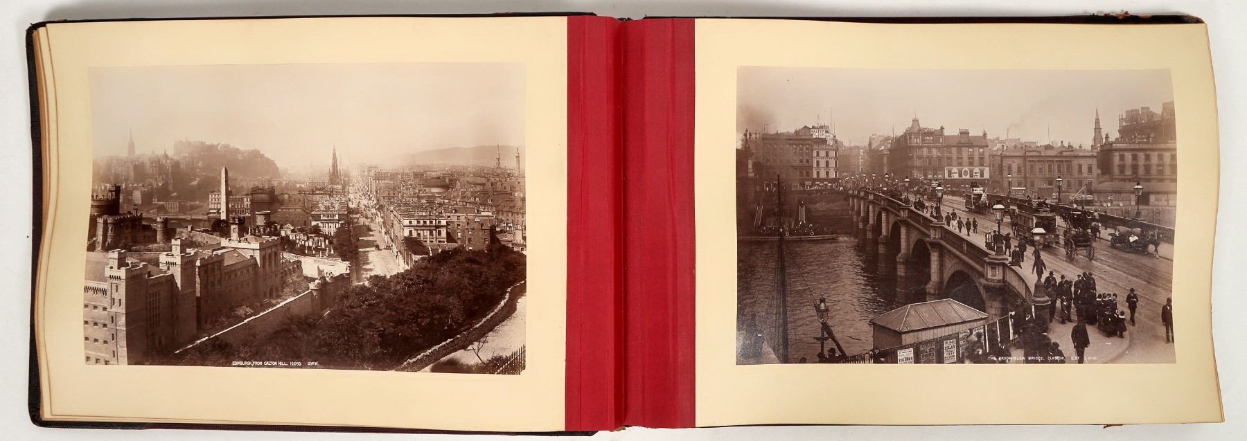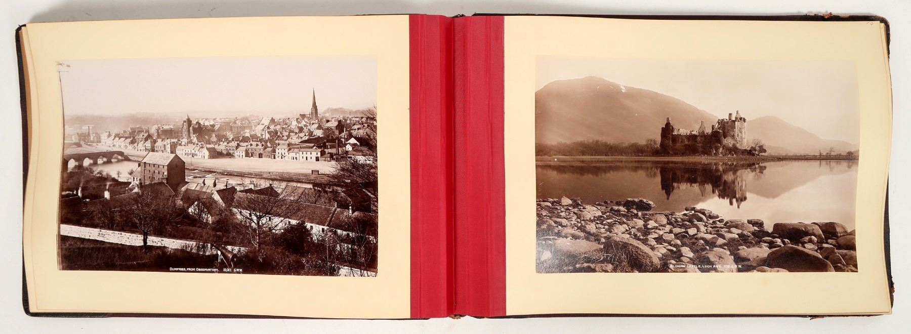 Hardcover collection of over 40 photographs of two sizes: 7.5 x 11.5" and 8 x 5". The entire book is 16 x 10.5 x 1" Includes views of buildings, castles, monuments, and scenery at Glasgow and surrounding locations. Also has pictures of paddlewheel steamers like SS "Lord of the Isles" and SS Columbia. No Loch Ness. Photos are from George Washington Wilson, a pioneering Scottish photographer. He photographed the Royal Family and then switched to landscape photography in the 1860s.