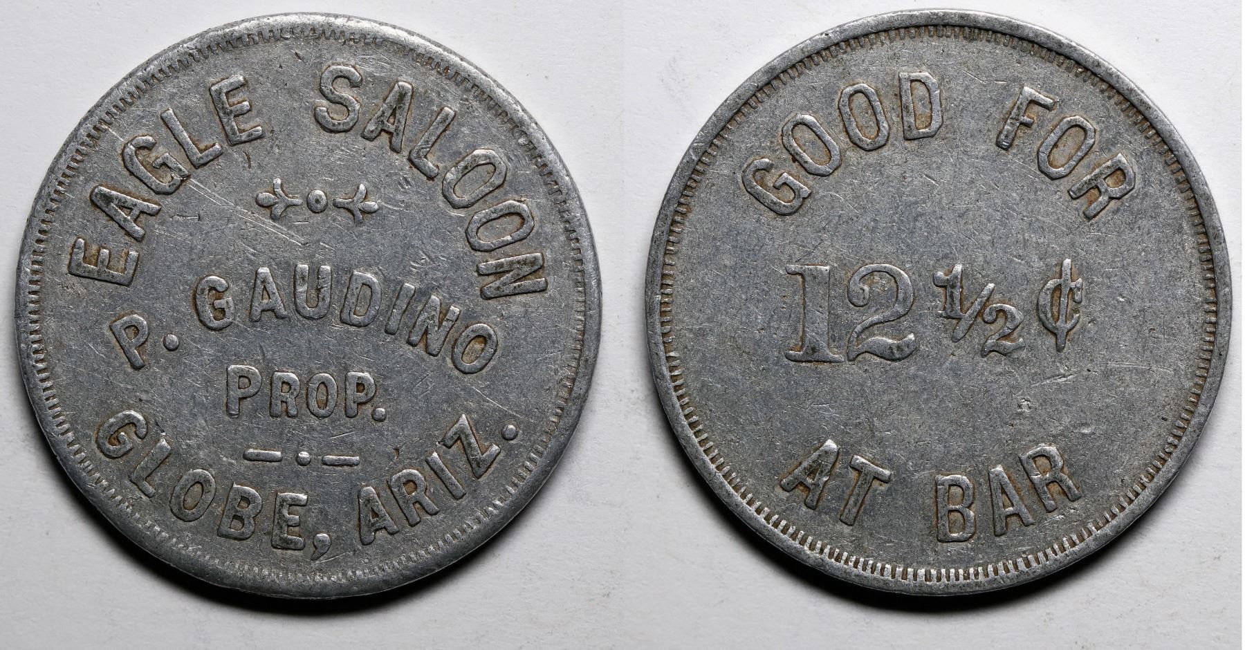 Eagle Saloon/ P. Gauding/Prop./Globe, Ariz.//G.F./12 1/2¢/At Bar. Rd., A.L., 30mm. R-10