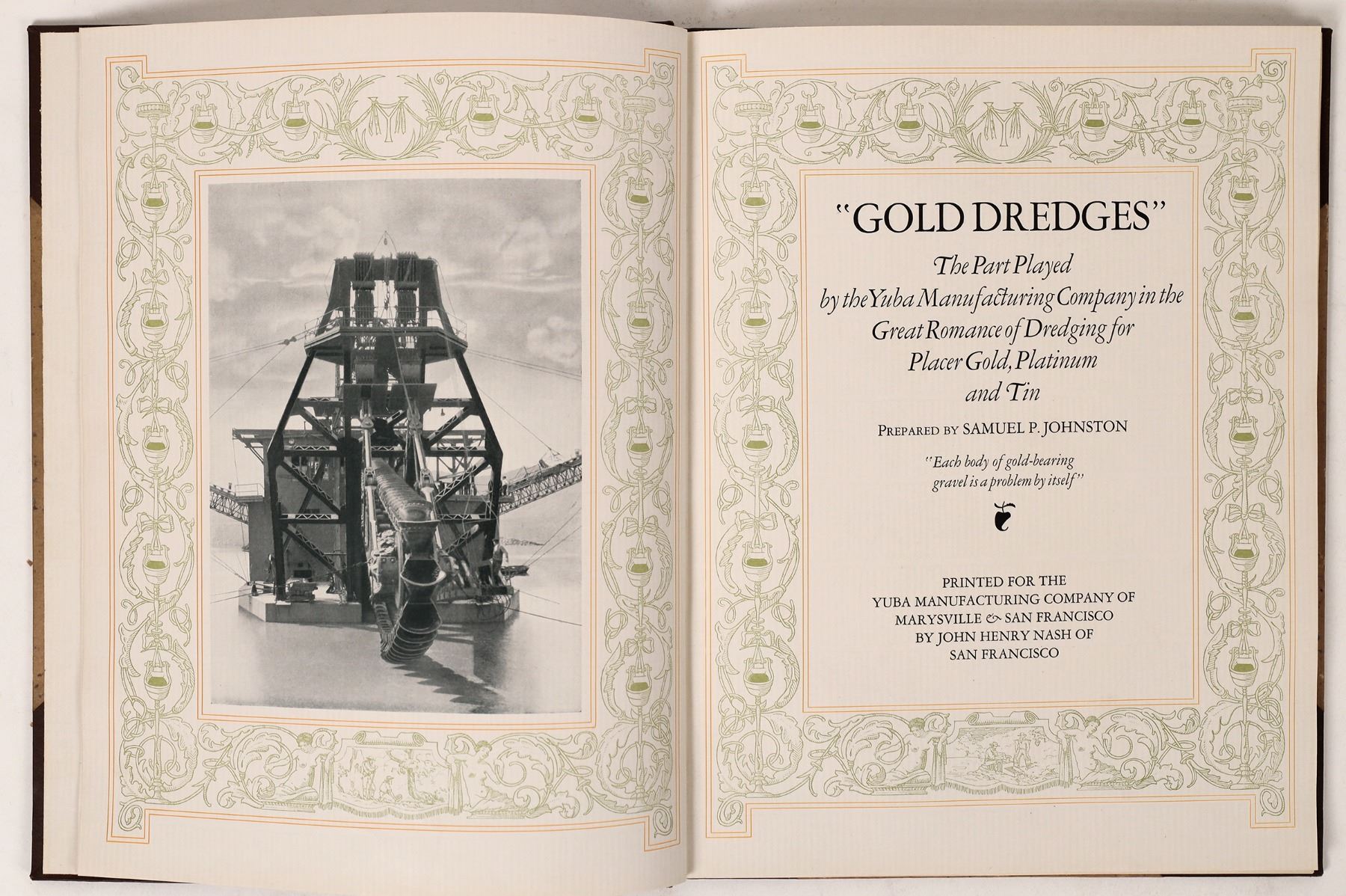 Hardcover book in original cardboard mailer. Gold Dredges by Yuba Manufacturing, 1927. Lots of dredge and dredge parts photos of the bucket line machine that harvested California gold. 44pp. California