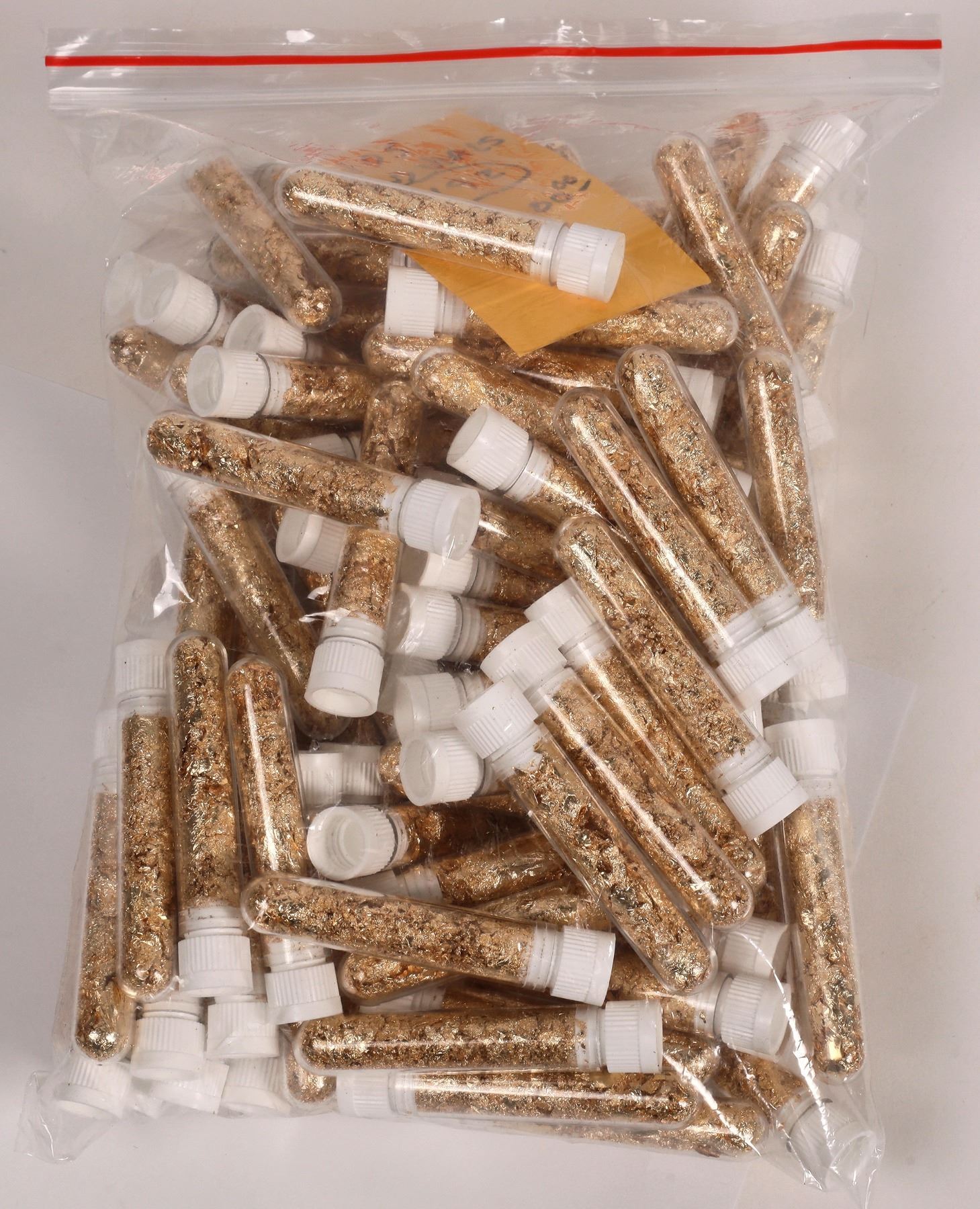 105 vials with gold foil, less than 2 grams of gold in each.