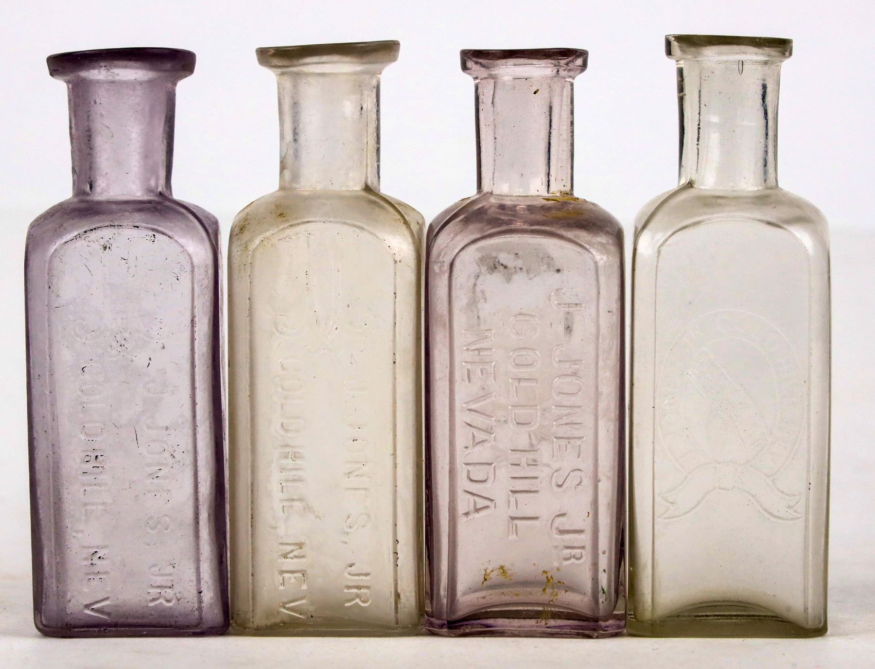 Lot of 4. Small medicine bottles of J. Jones Jr. druggist. In very good condition.