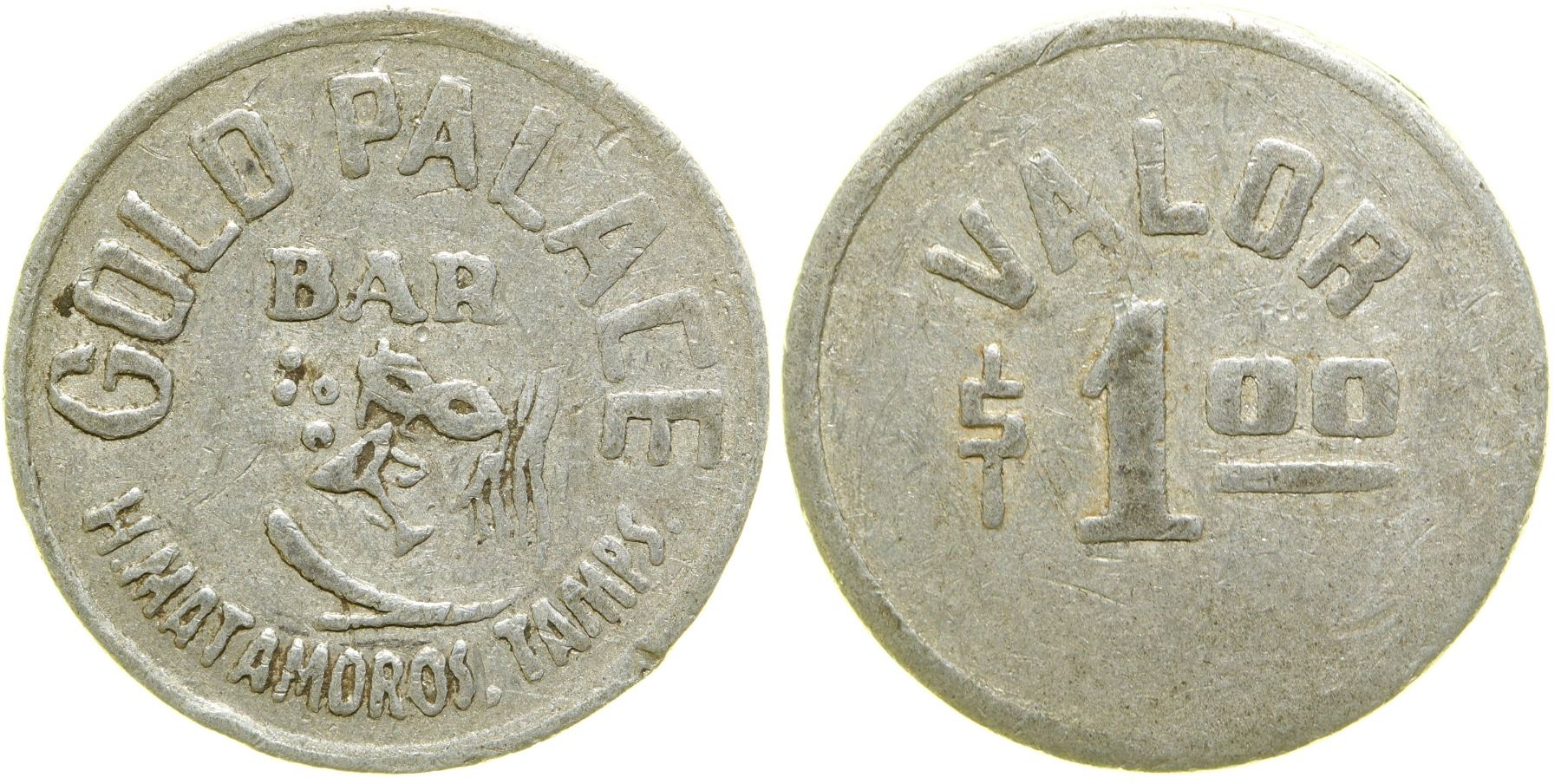 Obv.: Gold Palace / Bar /H. Matamoros Tamps.; Rev.: Valor / $1.00. Wm, rd., 21 mm.
