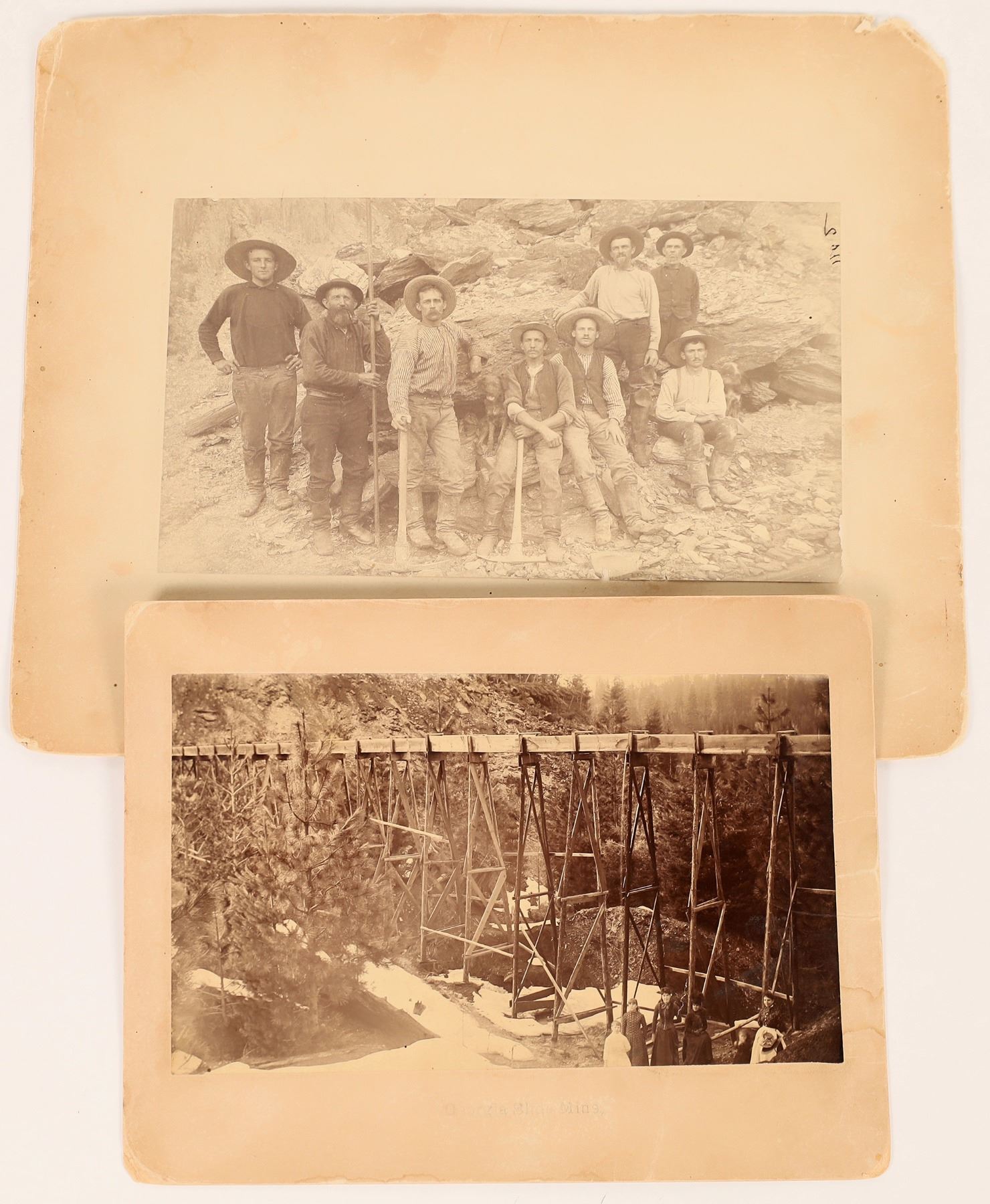 The first is a 4½ x 7¾“ by L. Reinhard showing a group of eight miners at the mine location, c1870’s.” L. Reinhard, Georgia Slide” is stamped on the reverse. The second is 4½ x 7¼“ by George D. Stewart a photographer located in Sacramento during the 1890’s. It shows a number of women and children by a flume used by the mine. Stewart’s company stamp is on the reverse.
