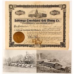 Very early number 24 for 10 shares to Charles H Dickey. 1893. Signed by A Ross and JD Simpson(?). Two underground mining vignettes. Two hole punches.
