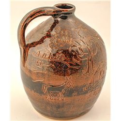 Brown 9.5" single handle jug by Patrick Shields. Depicts miners, #2/50. Date: Location: Dahlonega, Georgia HWAC# 58600